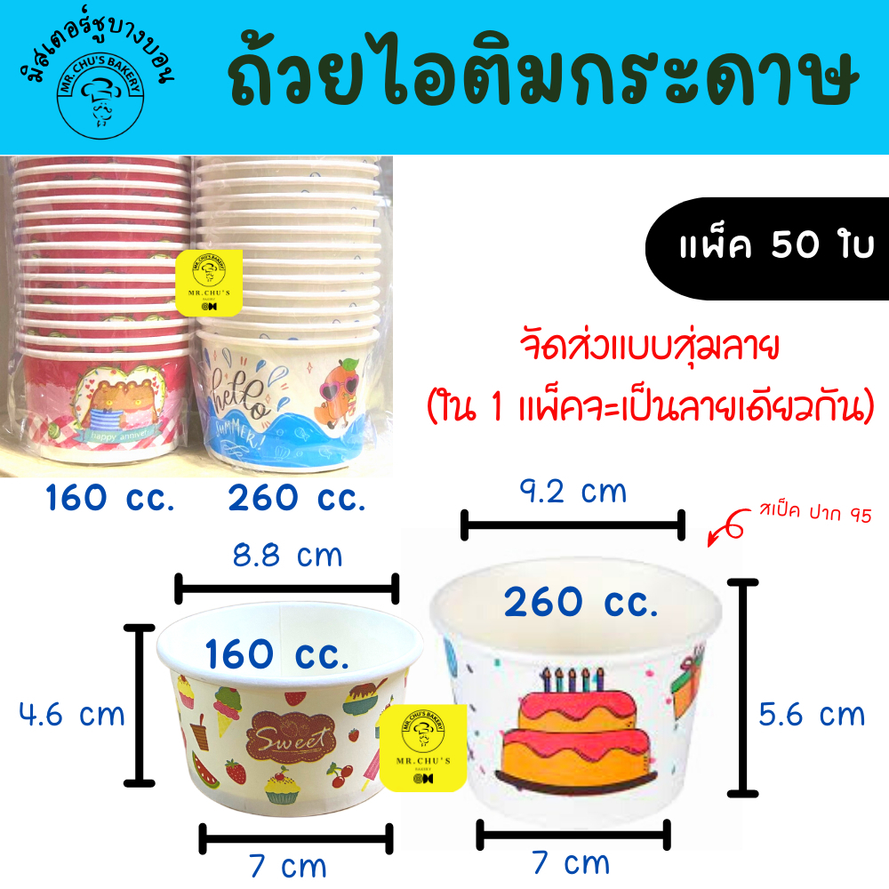 🚀พร้อมส่ง🚀 ถ้วยไอติม กระดาษ 160 cc , 260 cc แพ็ค 50 ใบ ถ้วยไอศครีมกระดาษ