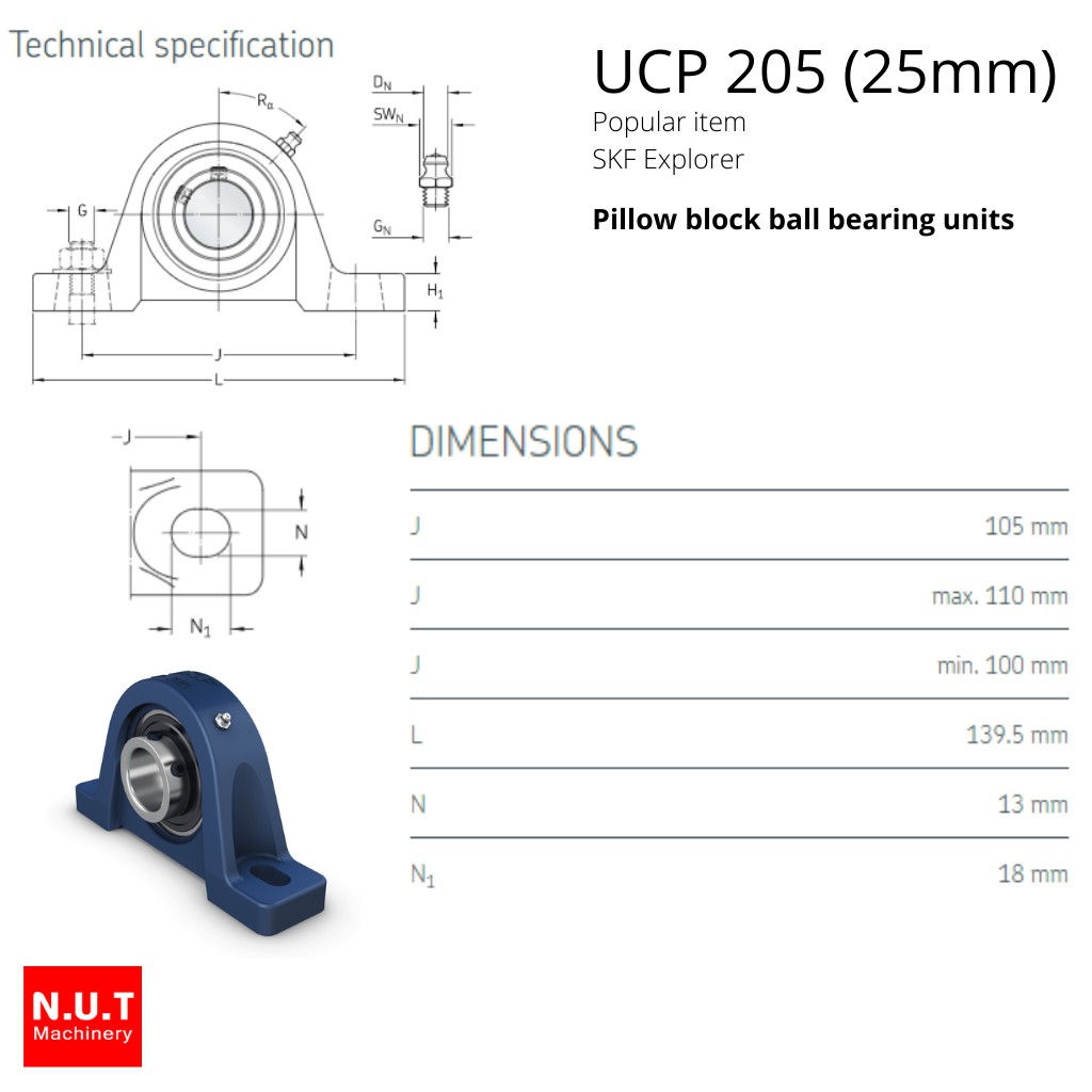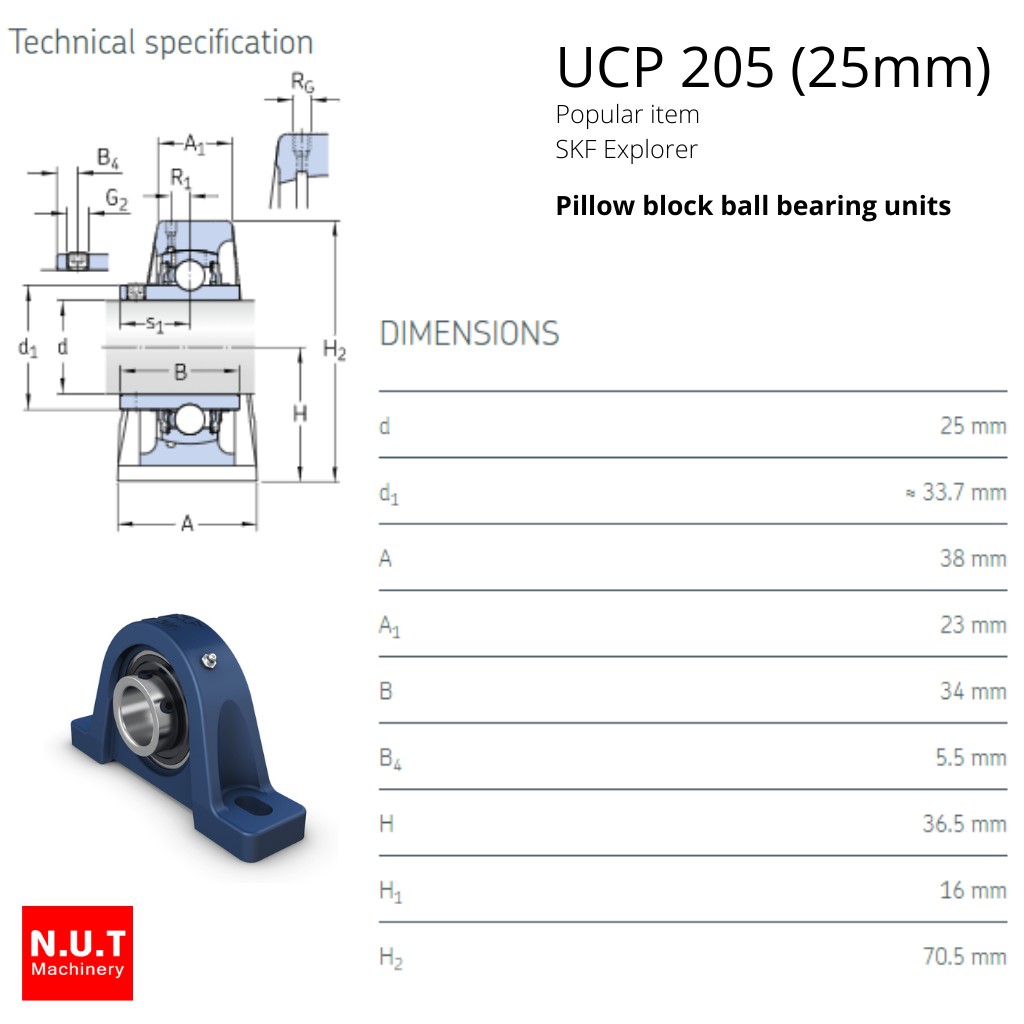 ตลับลูกปืนตุ๊กตาหัวโค้ง SKF UCP 205 (SYJ 25 TF) รูใน 25 มิล