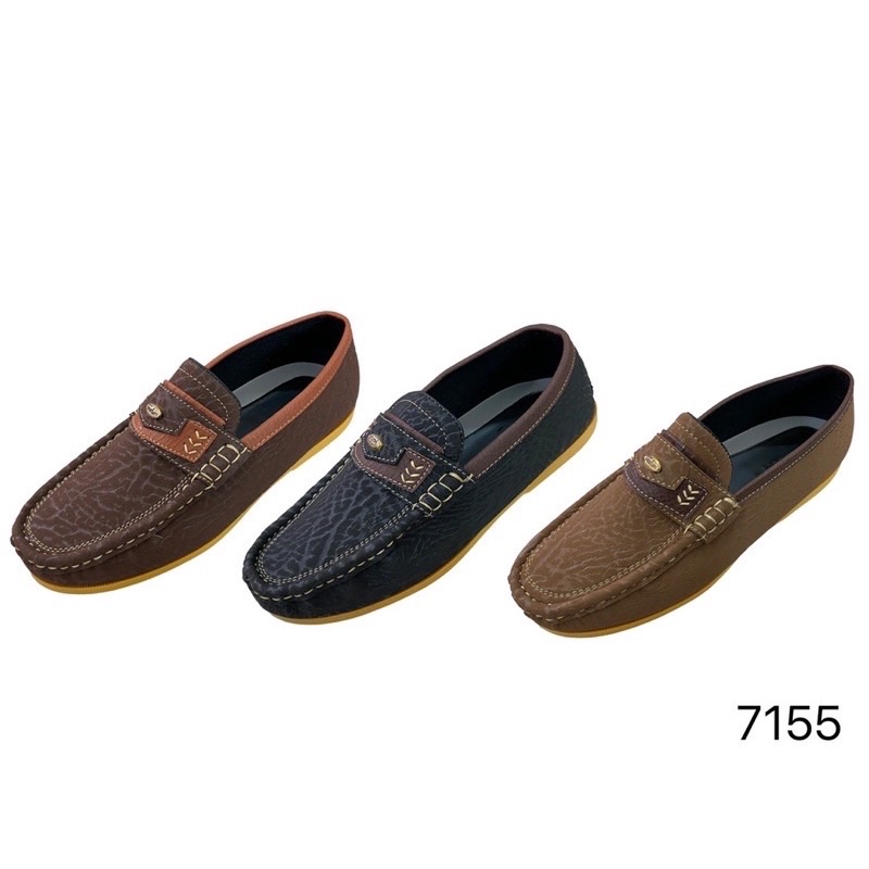 🍎V-Minnute รุ่น 7155 🍎รองเท้าคัชชูชายลายหนังช้างแนวMoccasin(มอสคาซิน) รองเท้ารัดส้น