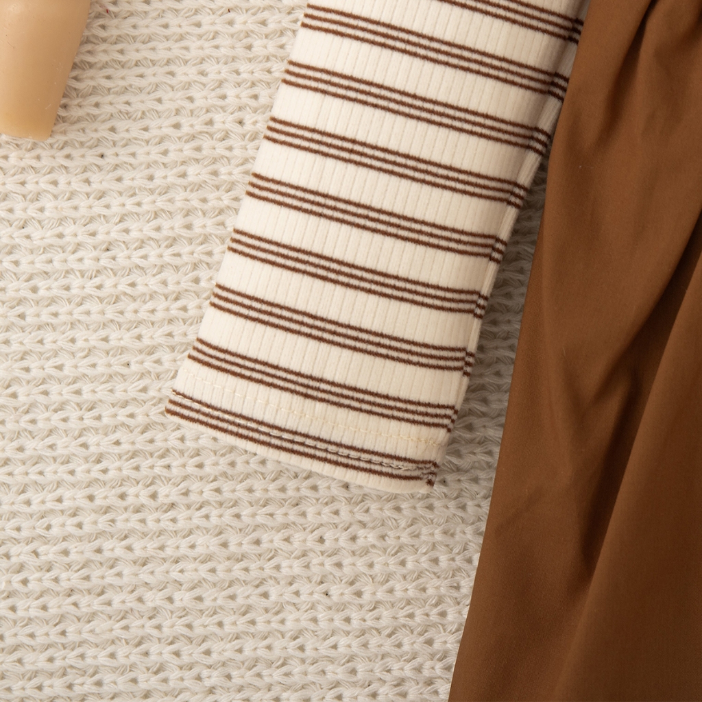 ฤดูใบไม้ร่วงใหม่ชุดเดรสเด็กผู้หญิงลายทางสีน้ําตาล,เสื้อผ้าเด็กการ์ตูนน่ารัก (6-24 เดือน)
