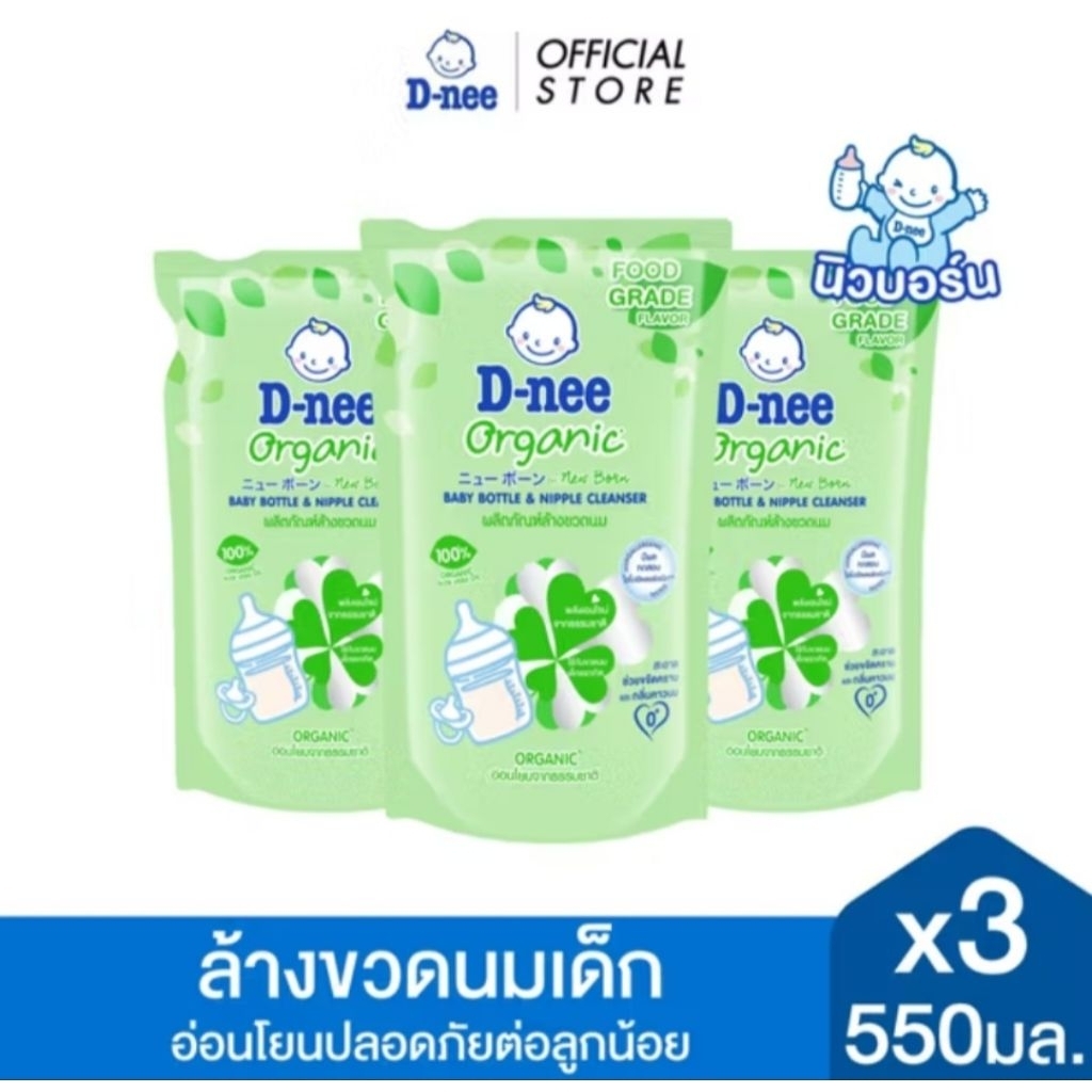 [แพค1ถุง][แพค3ถุง]🔥ลด50%ในไลฟ์🔥D-nee ดีนี่ น้ำยาล้างขวดนม จุกนม ขนาด 550ml. x3