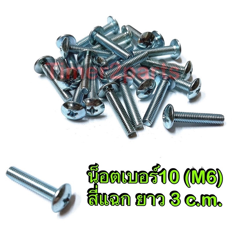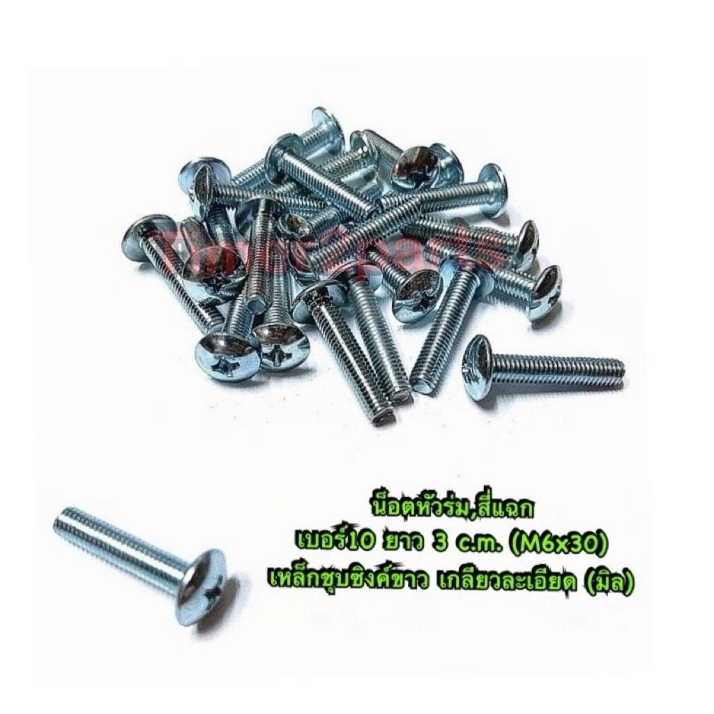 น็อตหัวร่ม สี่แฉก JT เบอร์10 ยาว 3 c.m. M6x30 เหล็กชุบซิงค์ขาว เกลียวมิล คุณภาพดี ราคา/ตัว