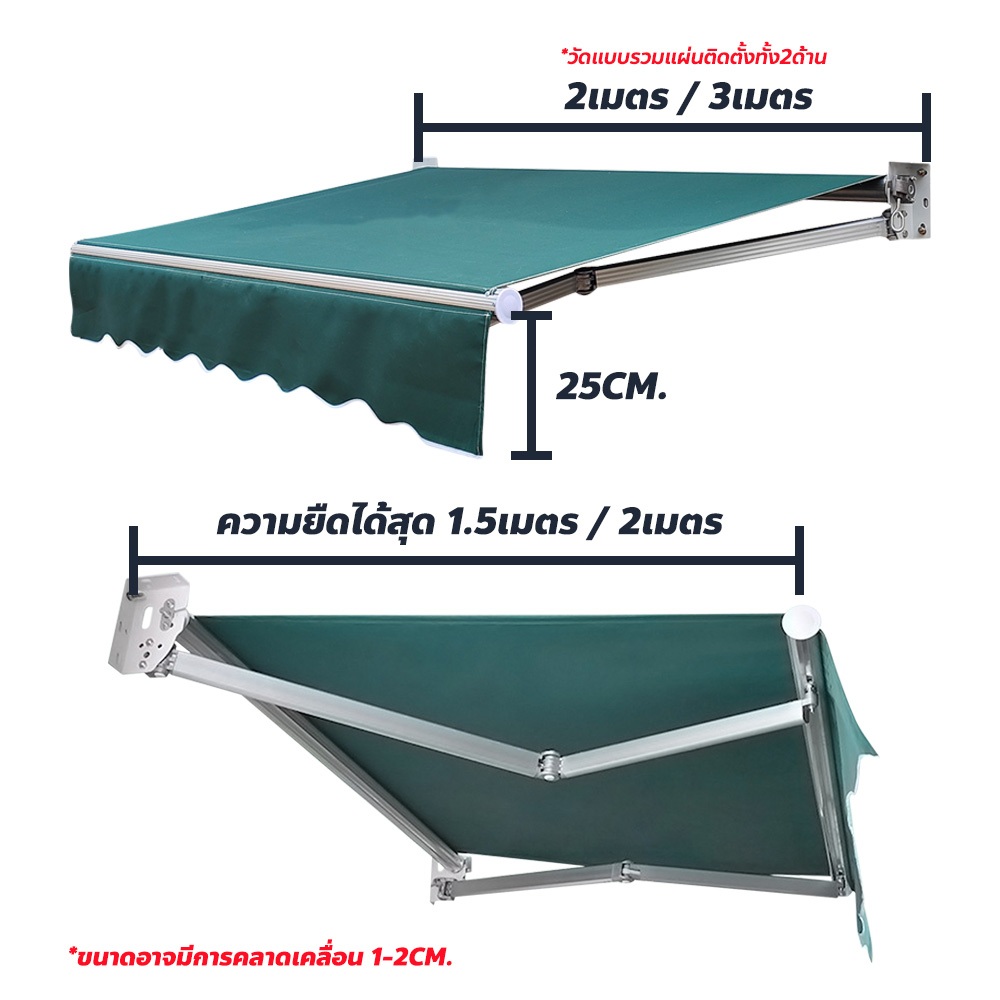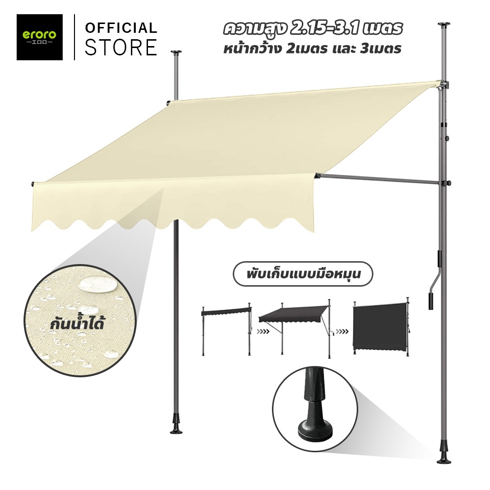 ERORO กันสาดปรับได้ พับเก็บได้ มีหลายขนาดเลือกได้ กันน้ำ กัน UV ทนทาน