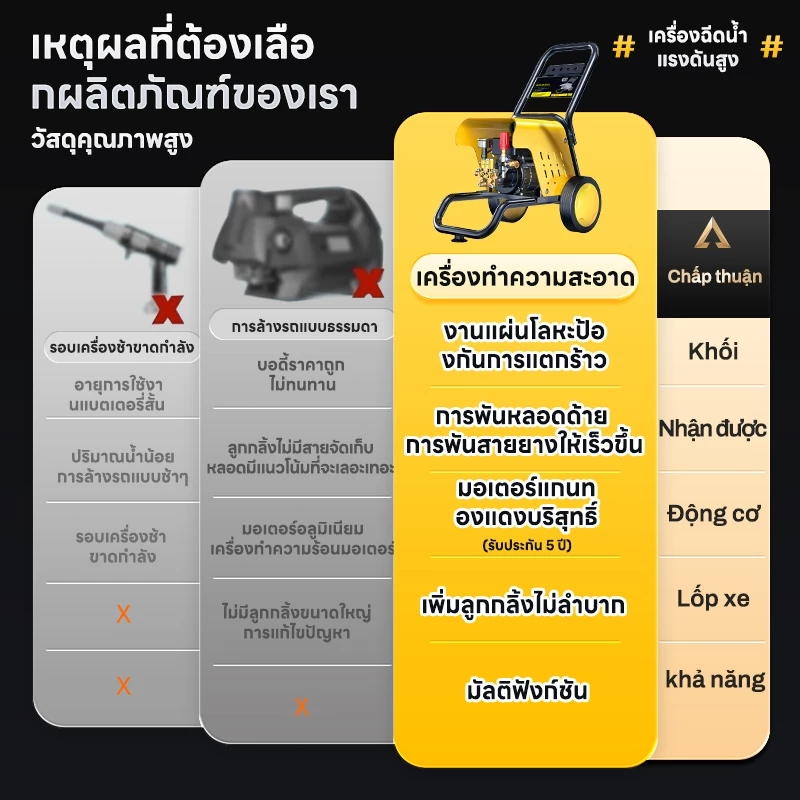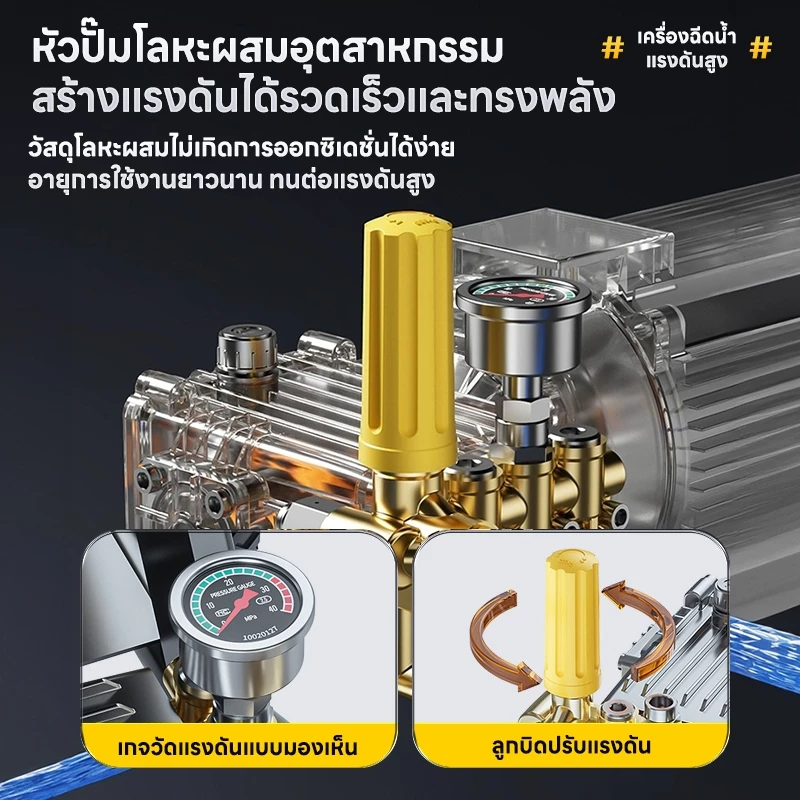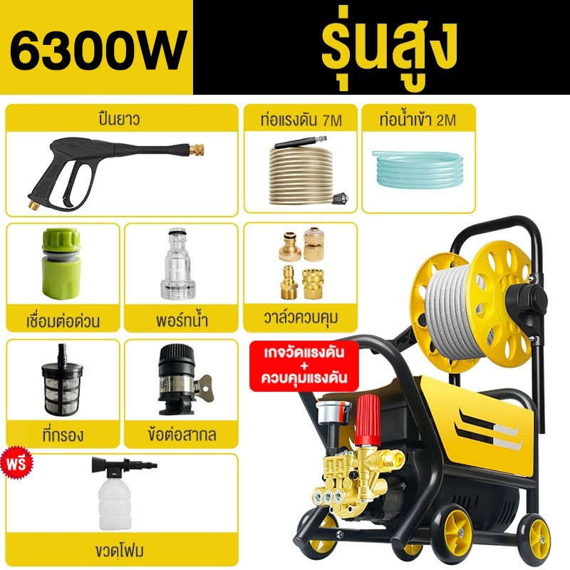 PPD เครื่องฉีดน้ำแรงดันสูง 6800W 3000bar เครื่องฉีดน้ำแรงดันสูงแบบพกพา ปรับแรงดันน้ำได้ ดูดน้ำได้ด้วยตัวเอง