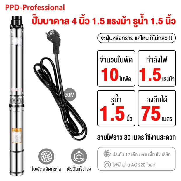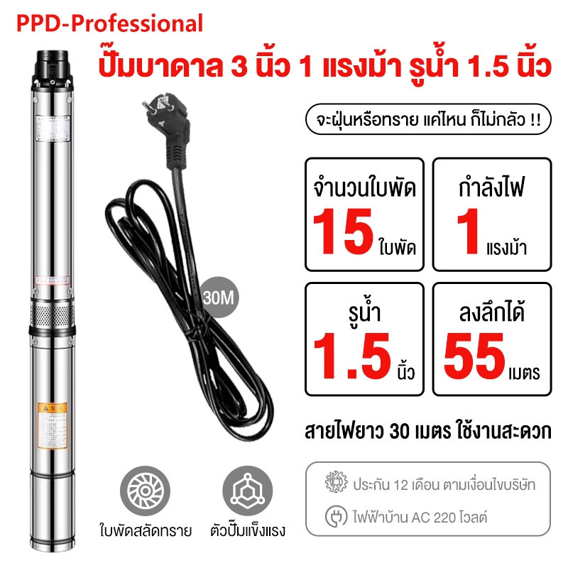 ยอดขายอันดับ 1 🥇PPD (ซับเมอร์ส) ปั๊มบาดาล ใบพัดสลัดทราย บ่อ 3 นิ้ว บ่อ 4 นิ้ว ขนาดท่อ 1.5 นิ้ว ปั้มบาดาล AC 220V