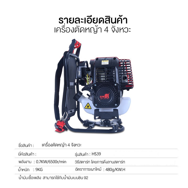 PPD เครื่องตัดหญ้ามัลติฟังก์ชั่น กระเป๋าเป้ 4จังหวะ 1500W ใบมีดเหล็ก น้ำหนักเบา แรงดันสูง หญ้าคา เบนซิน ลดเสียงดัง
