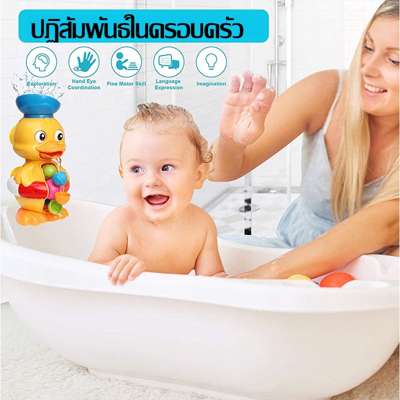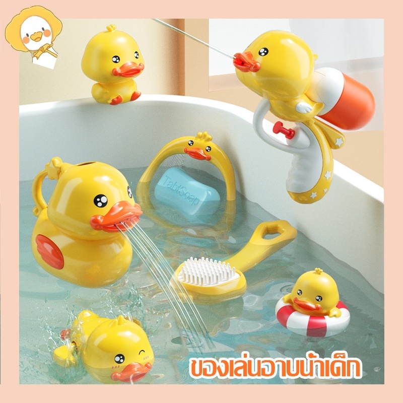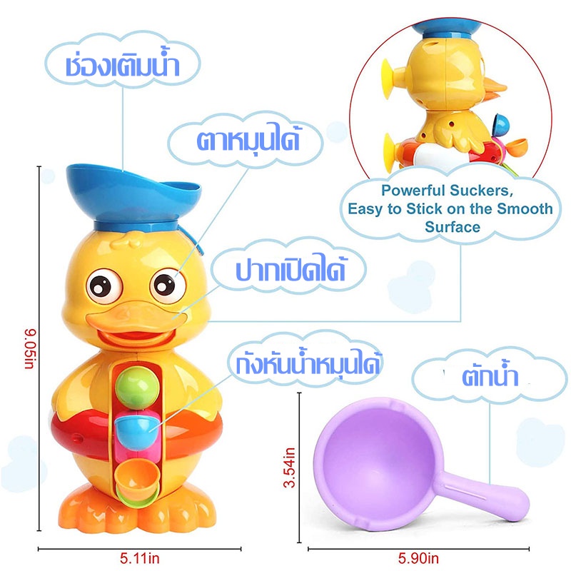 ของเล่นอาบน้ำเด็ก เป็ดน่ารัก กังหันน้ำหมุน เป็ดหมอ หันหลังอย่างมีความสุข เป็ดใหญ่ เด็กเล่นน้ำ
