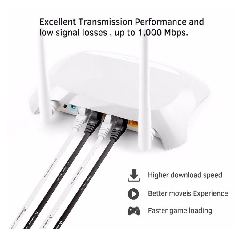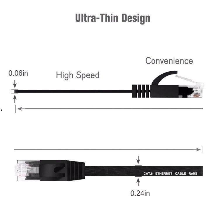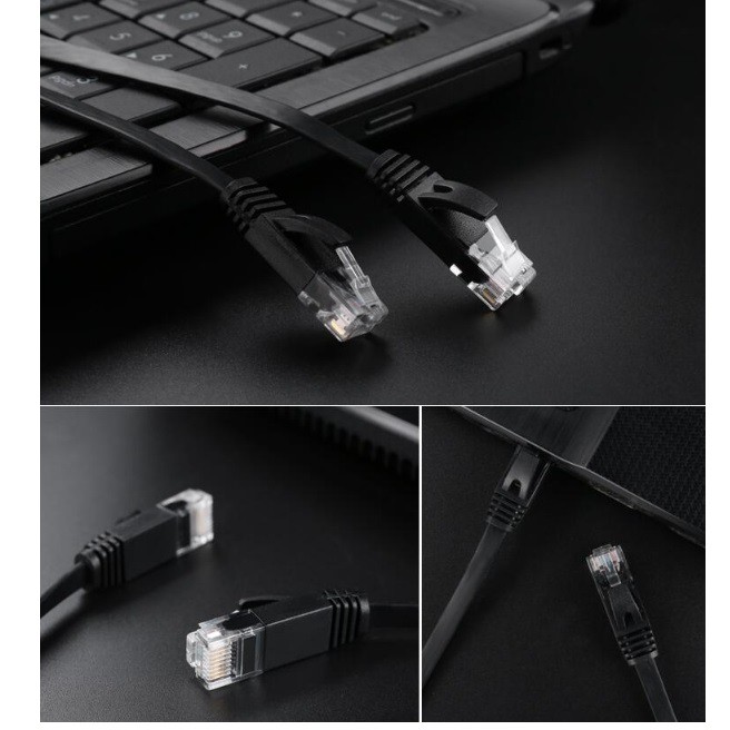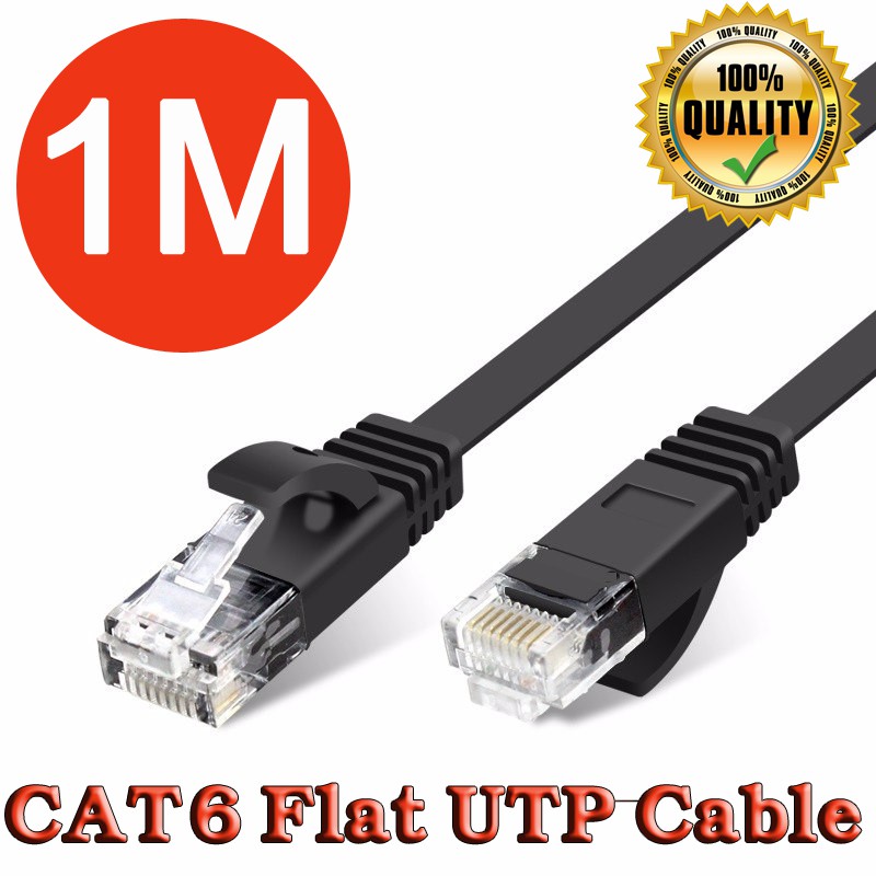 สายแลน สายแพทคอร์ด แบบแบน CAT6 ยาว 1 เมตร สีดำ (สามารถใช้กับ CAT5e ได้ ) Pure copper wire CAT6 Flat UTP Ethernet Network