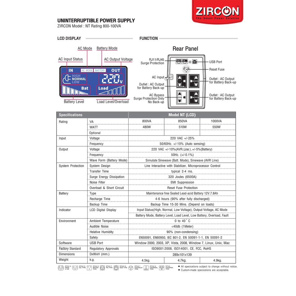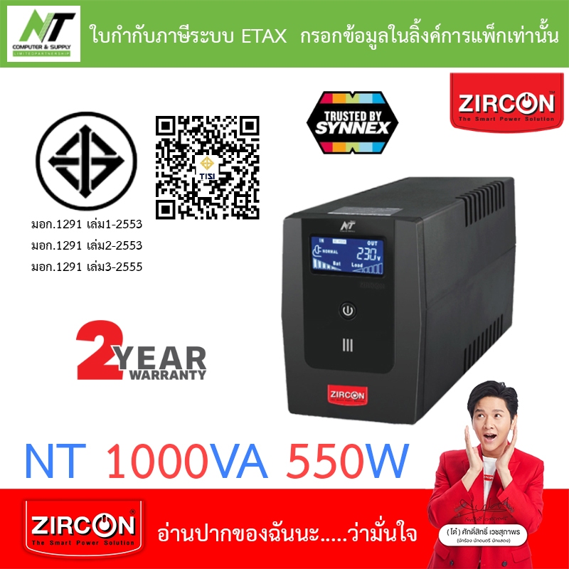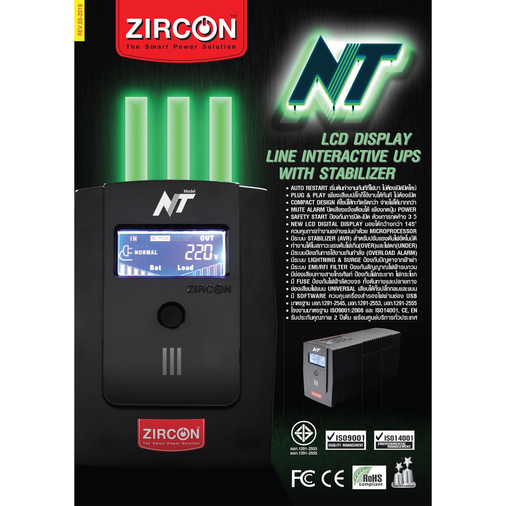 ZIRCON UPS เครื่องสำรองไฟ LCD หน้าจอดิจิทัล ปิดเสียงเตือนได้ รุ่น NT 1000VA 550W