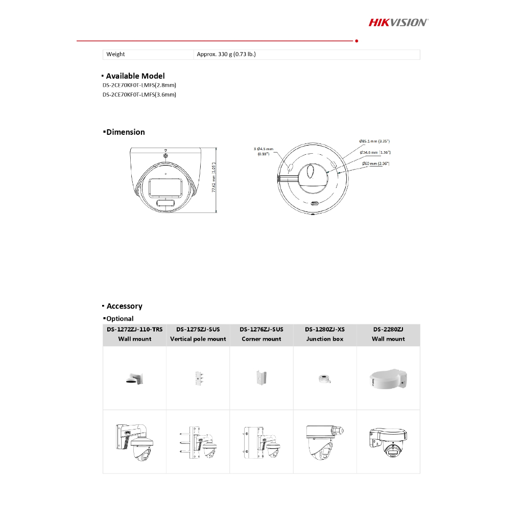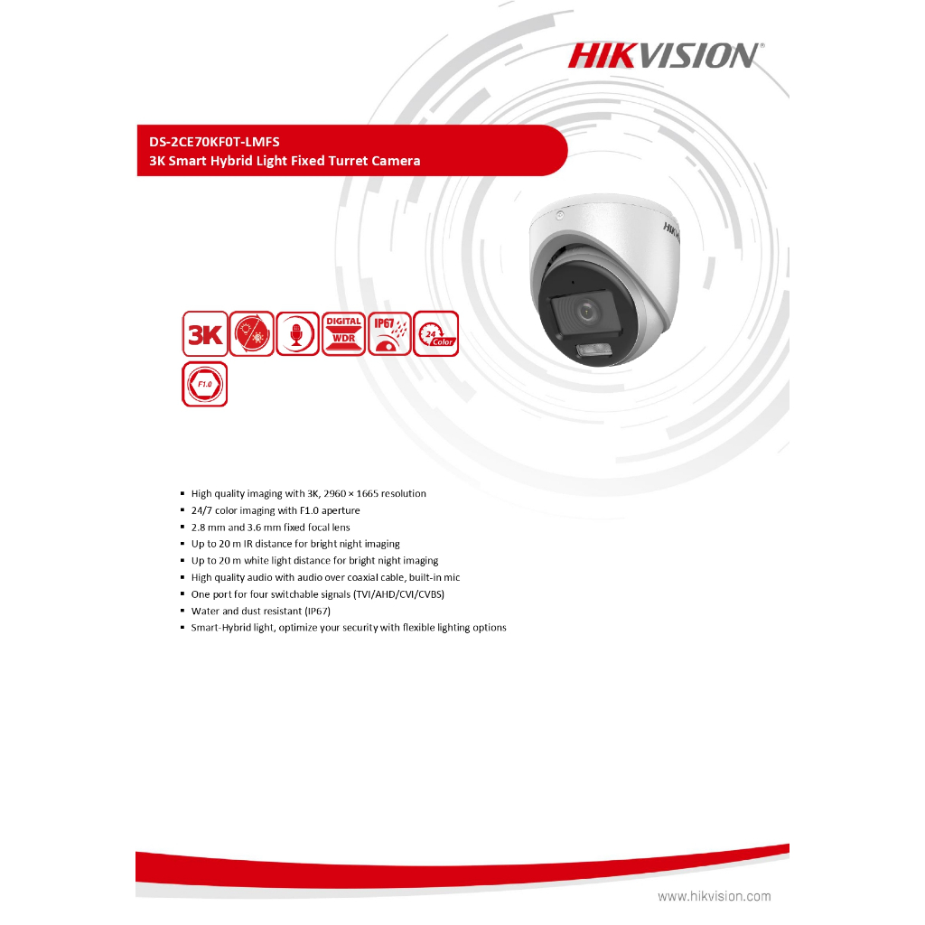 Hikvision กล้องวงจรปิด 5MP ColorVu มีไมค์ในตัว รุ่น DS-2CE70KF0T-LMFS เลนส์ 2.8mm BY N.T Computer