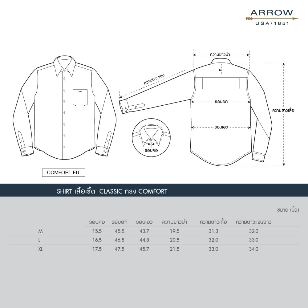 ARROW เสื้อเชิ้ต Non Iron แขนยาว ทรง Comfort Fit สีเทา MACC763 GY