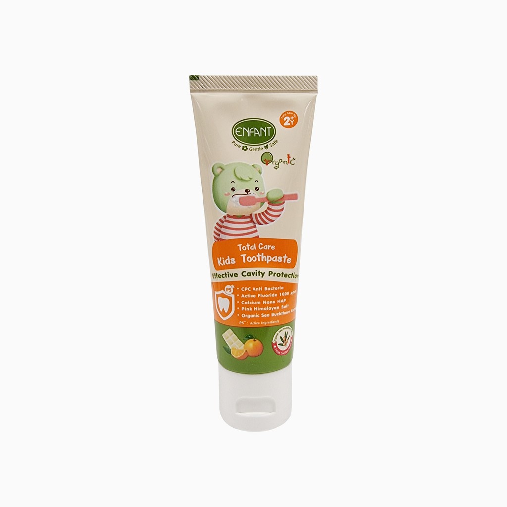 ENFANT (อองฟองต์) ORGANIC PLUS TOTAL CARE ยาสีฟันเด็ก กลิ่นออเร้นจ์ไวท์ช็อคโกแลต สำหรับเด็ก2ปีขึ้นไป แถมแปรงสีฟันในกล่อง