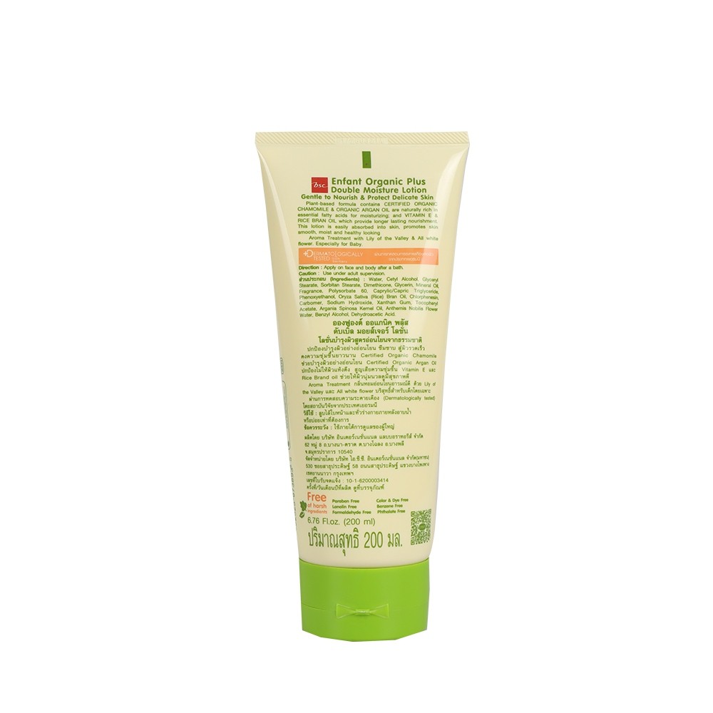 Enfant (อองฟองต์) ออแกนิค ดับเบิ้ล มอยส์เจอร์ โลชั่น ชนิดหลอด ใช้ได้ตั้งแต่เด็กแรกเกิด 200ml.