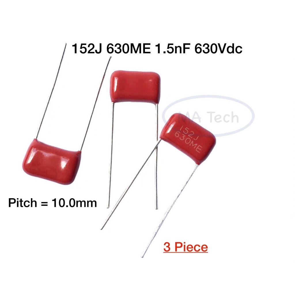 152J630ME 1.5nf 630v โพลีโพรพิลีน ฟิล์ม 1.5nF 630V Polyester Film 1.5nF 630V 152j630me 0.0015uf630v 1 มีจำนวน 3 ชิ้น