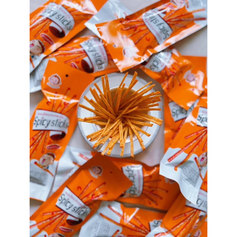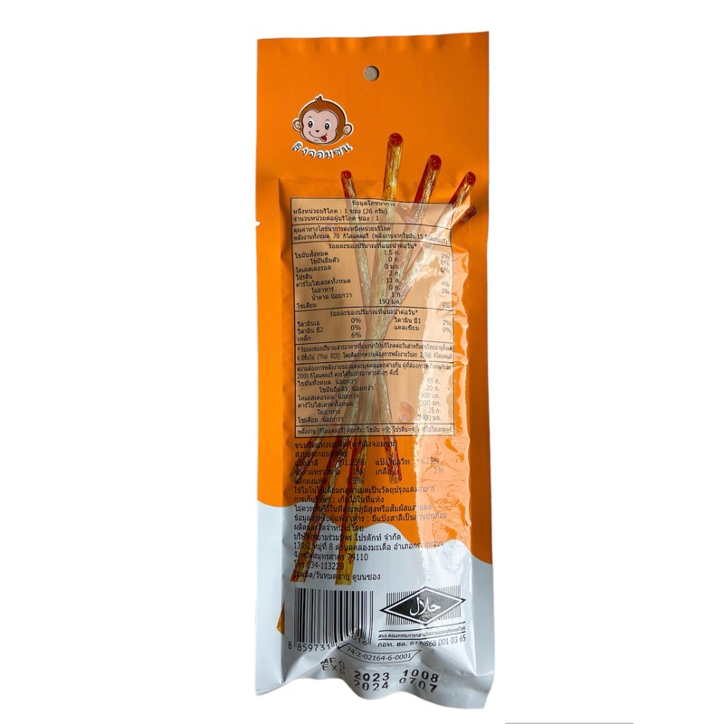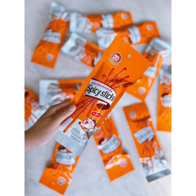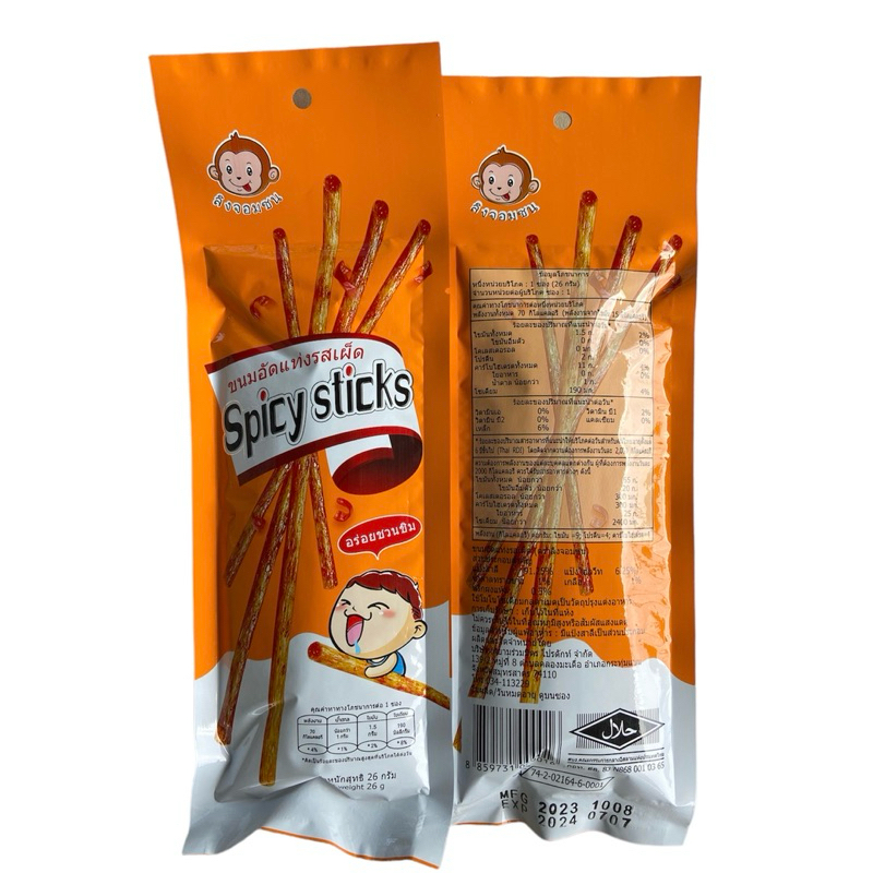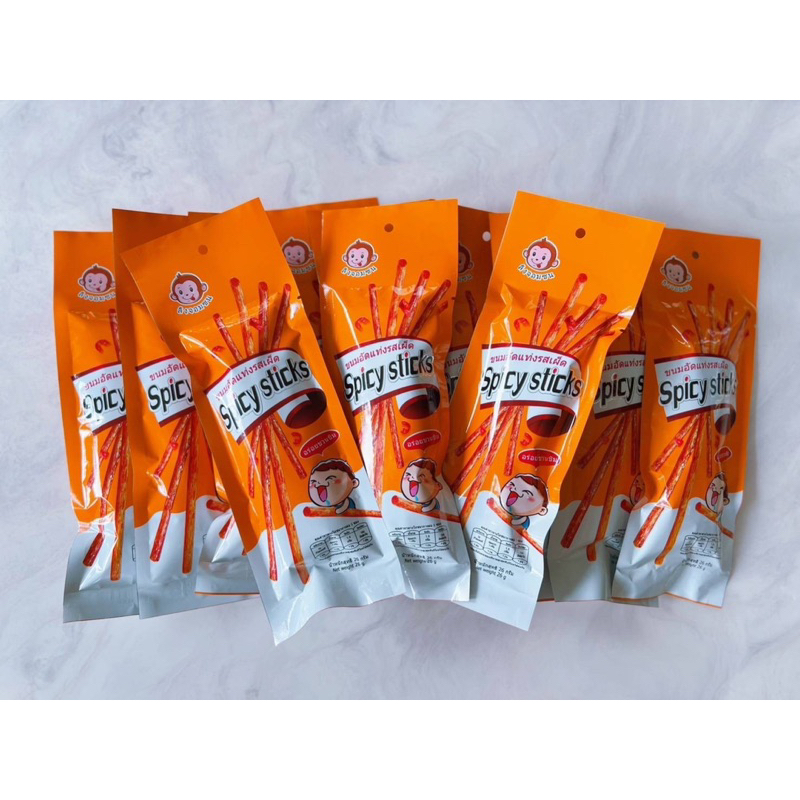 (1 แพ็ค 12 ซอง) ขนมอัดแท่งรสเผ็ด (ส้มเผ็ด) ตราลิงจอมซน