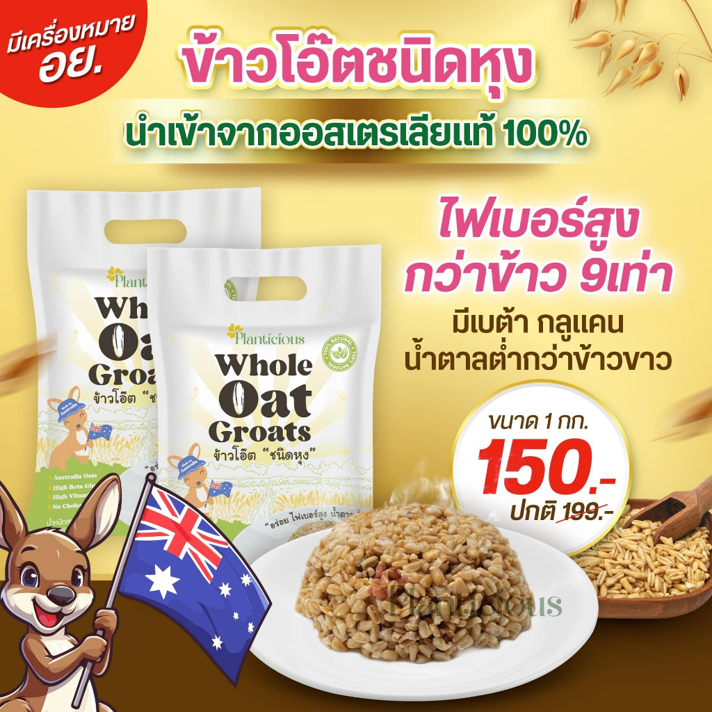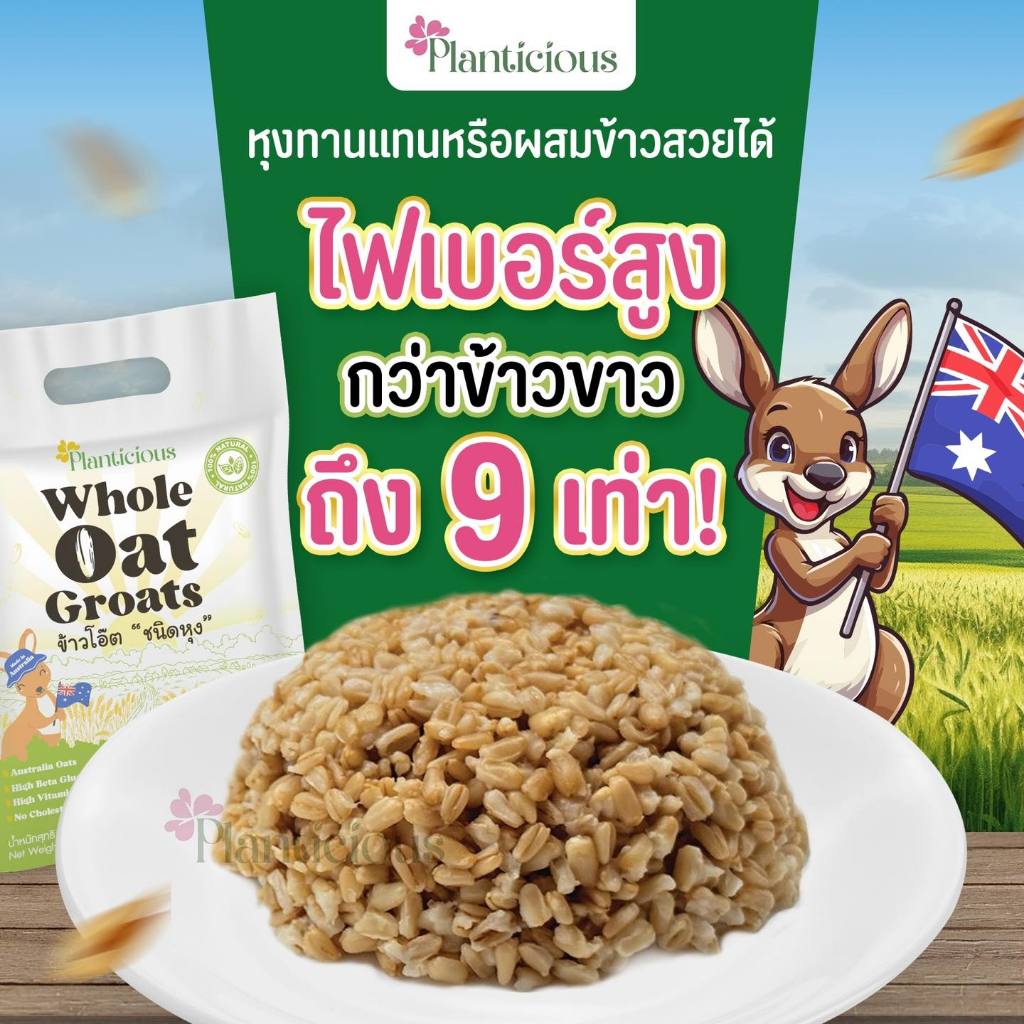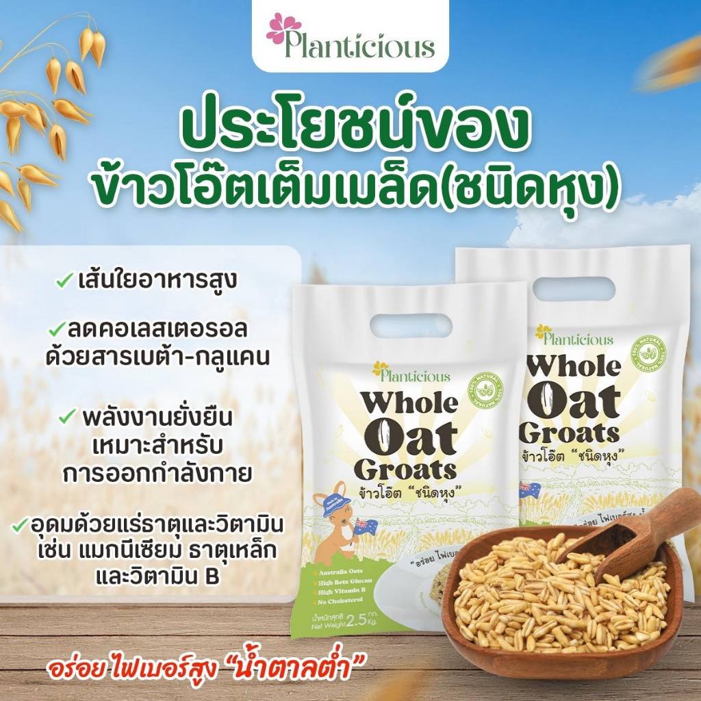 [3 แพ็ค] Planticious Whole Oat Groats แพลนติเชียส ข้าวโอ๊ตแบบหุง [1 KG.] ธัญพืช ข้าวโอ้ตแบบหุง