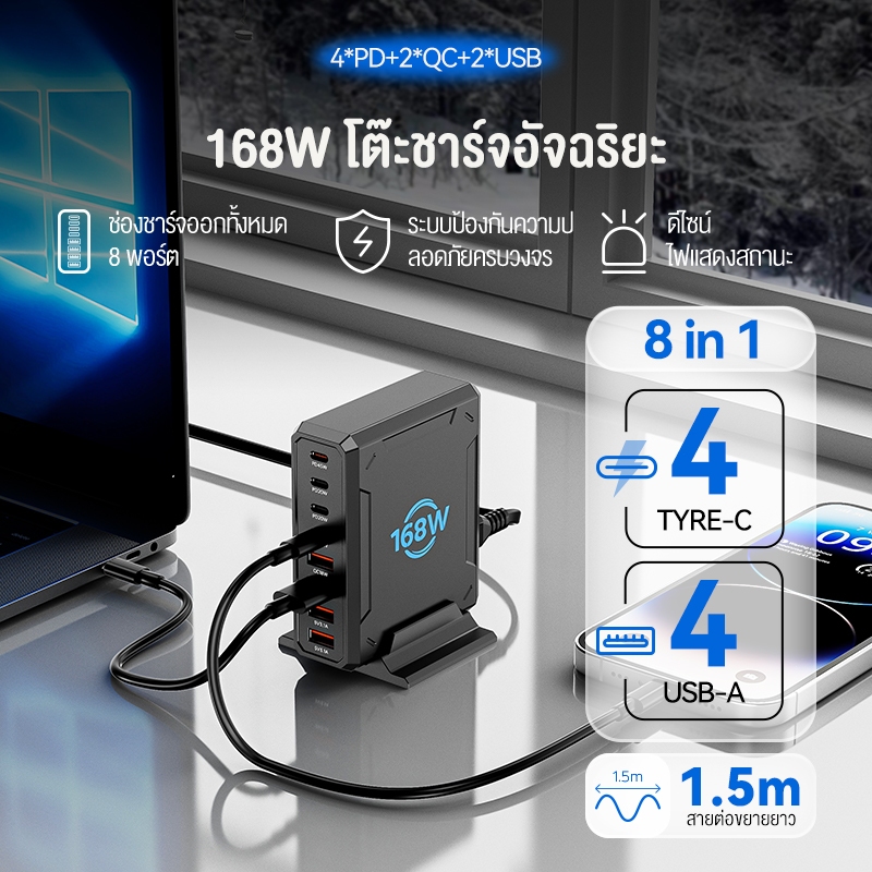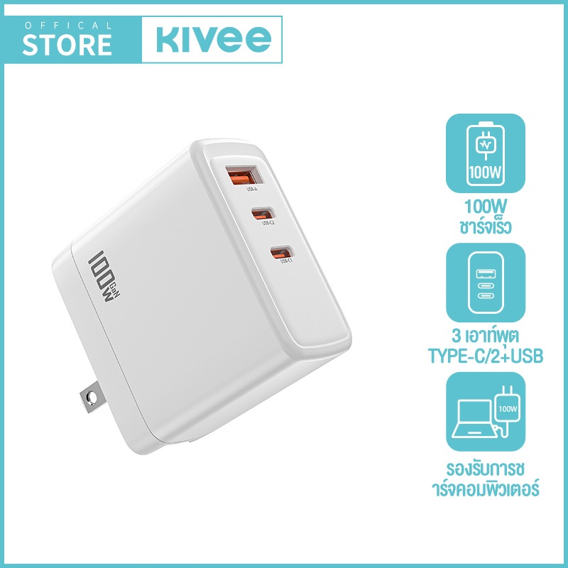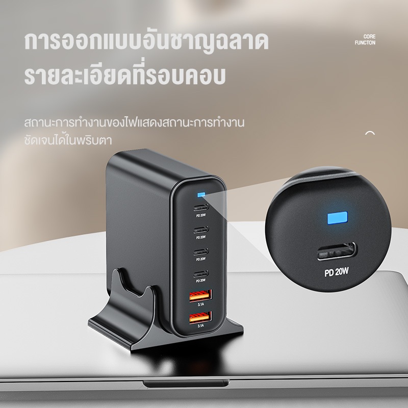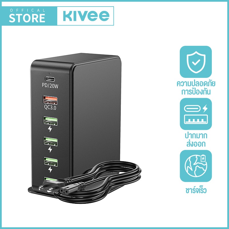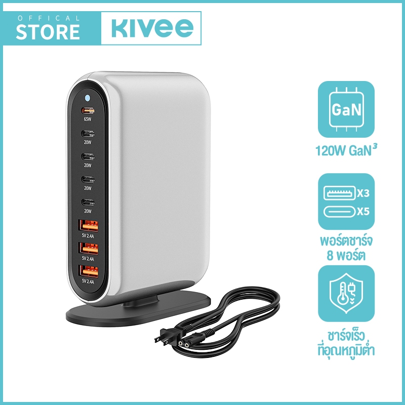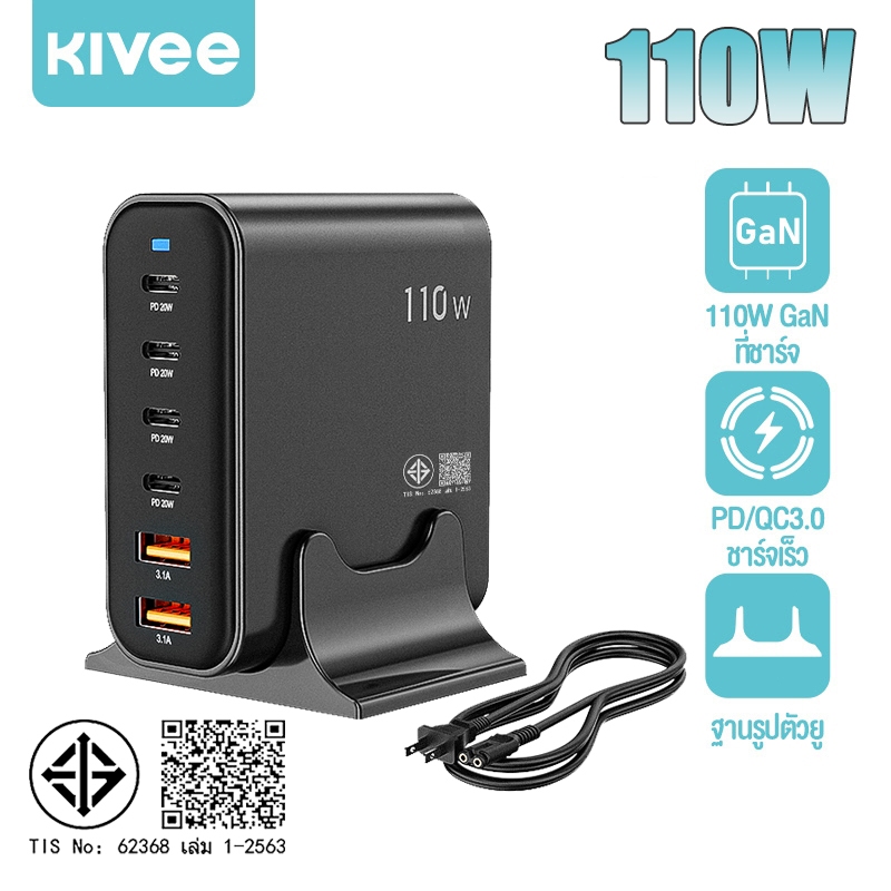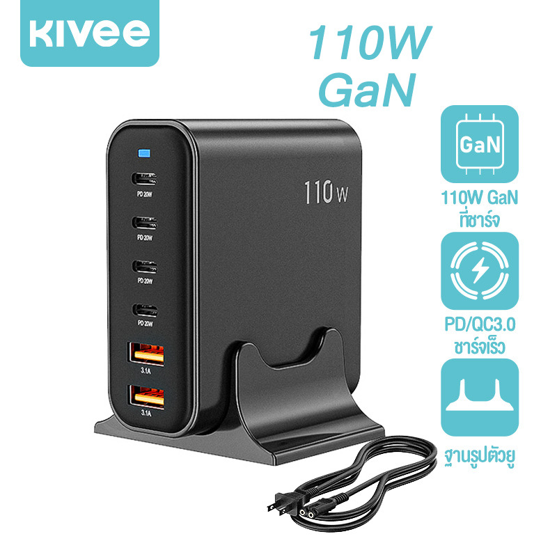 KIVEE GaN Desktop Charger 110W 6-Port Super Fast Charging QC3.0 PD GaN for IOS Samsung Huawei Vivo