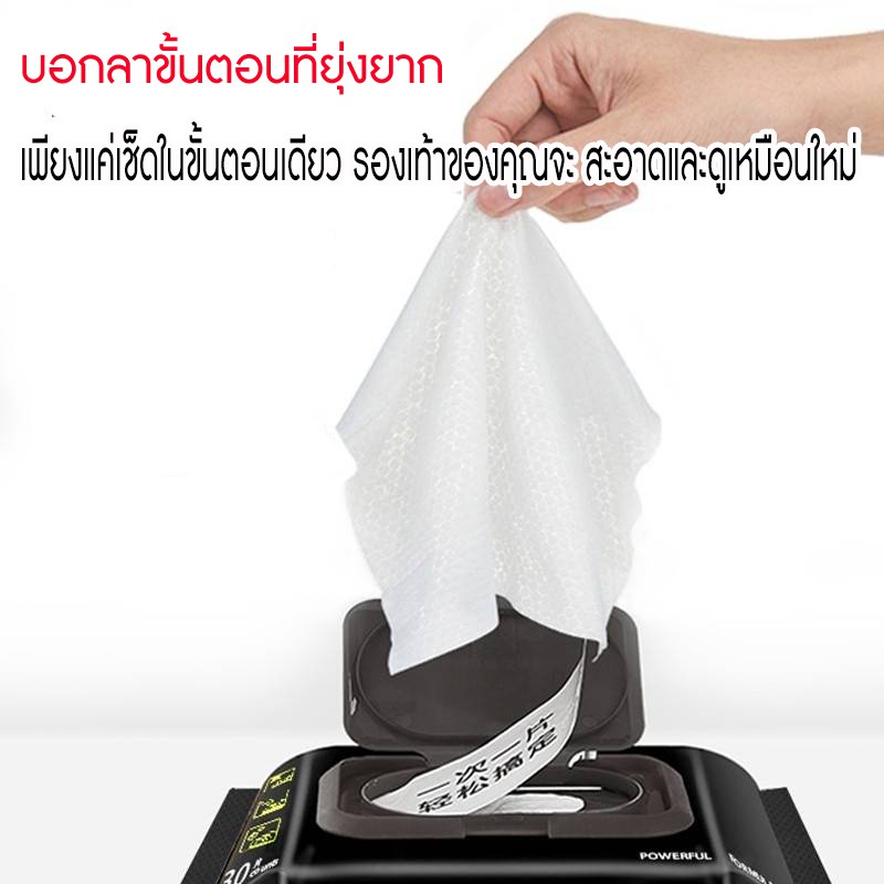 [30/80แผ่น] ทิชชู่เปียกเช็ดทำความสะอาดรองเท้า ผ้าใบ หนัง ใช้ได้กับทุกสี และมีสูตรสีขาวโดยเฉพาะ