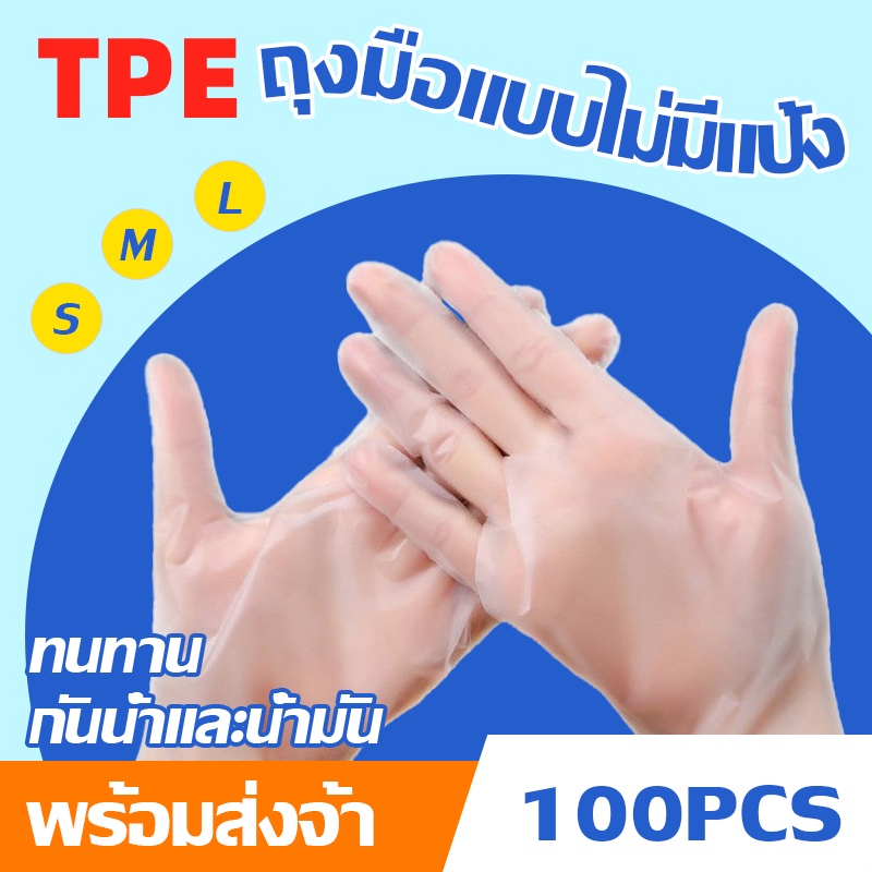 KitchenTalk ถุงมือใช้แล้วทิ้ง TPE 100 ชิ้น เนกประสงค์