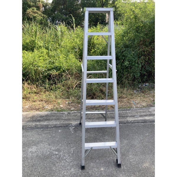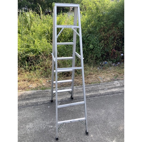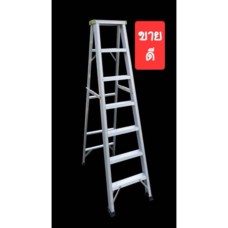 (ส่งฟรีส่งไว)บันไดอลูมิเนียมหัวพลาสติกสีเขียว7ขั้น(สูง1.75เม ตร)ขึ้น-ลงได้1ทางราคาถูกมาก
