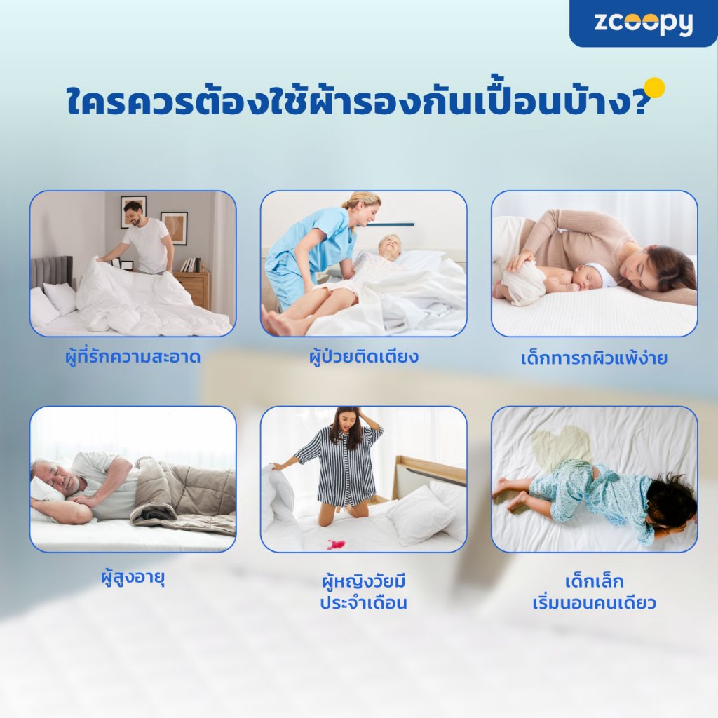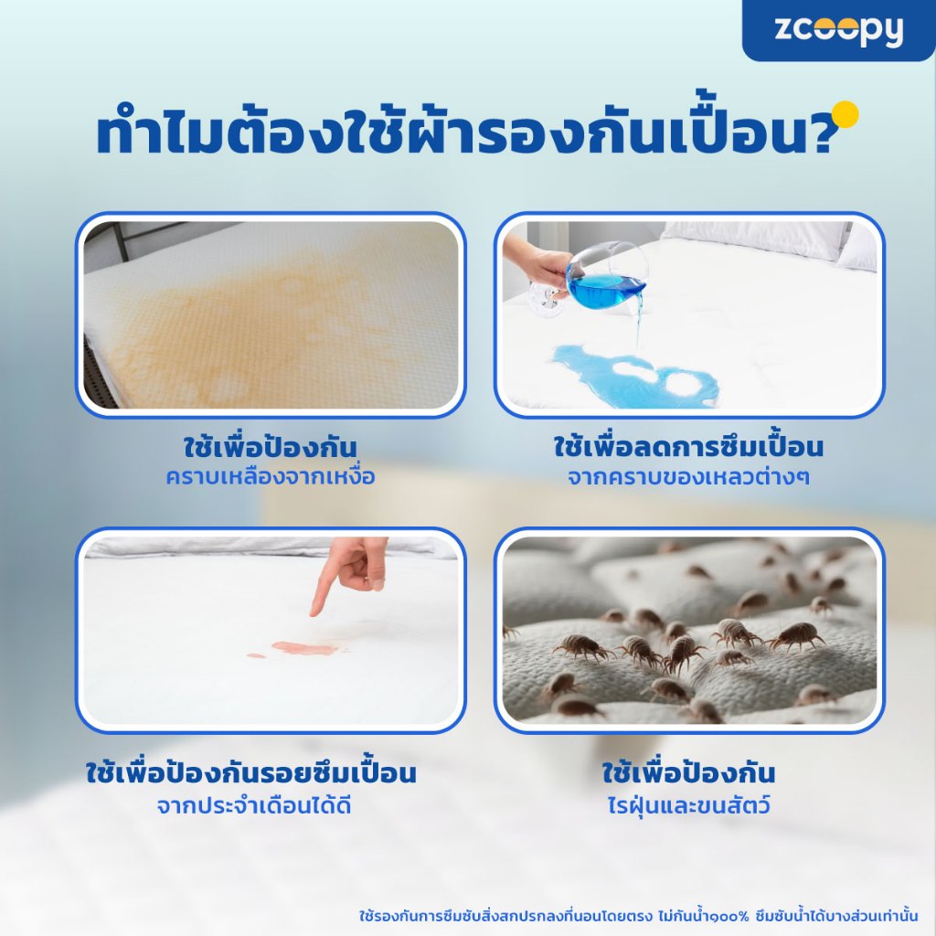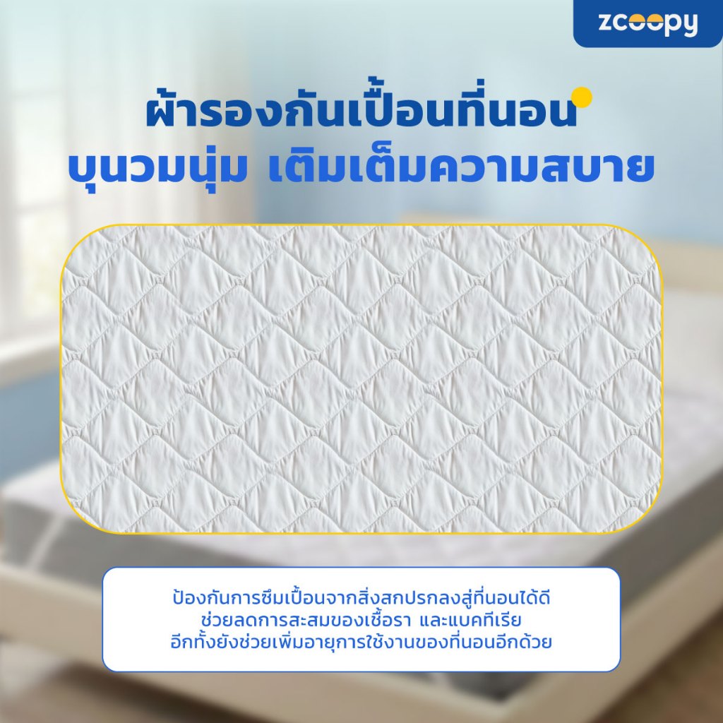 Zcoopy Protector ผ้ารองกันเปื้อนที่นอน ผ้ารองฉี่ กันสิ่งสกปรกลงที่นอน มียางรัด 4 มุม กันหลุด ขนาด 6 ฟุต