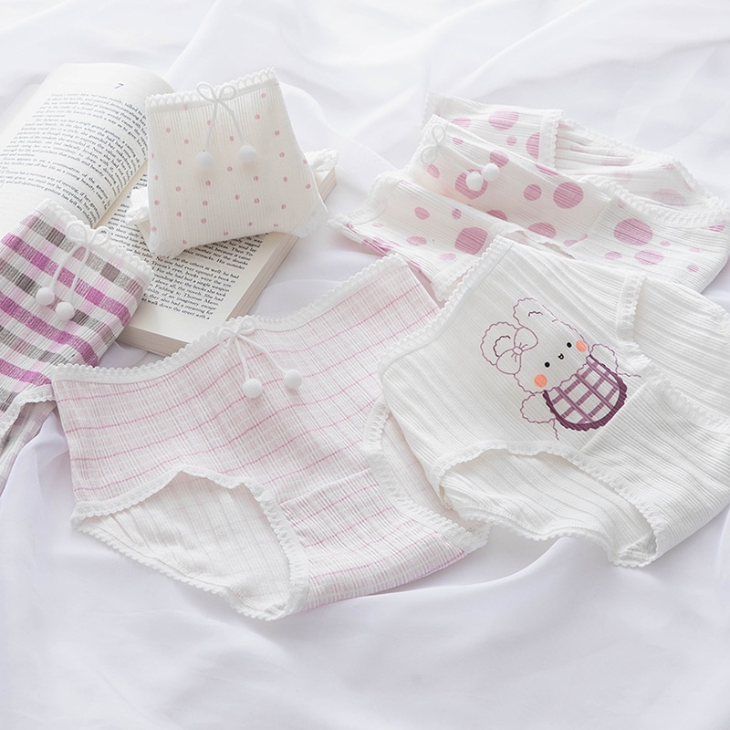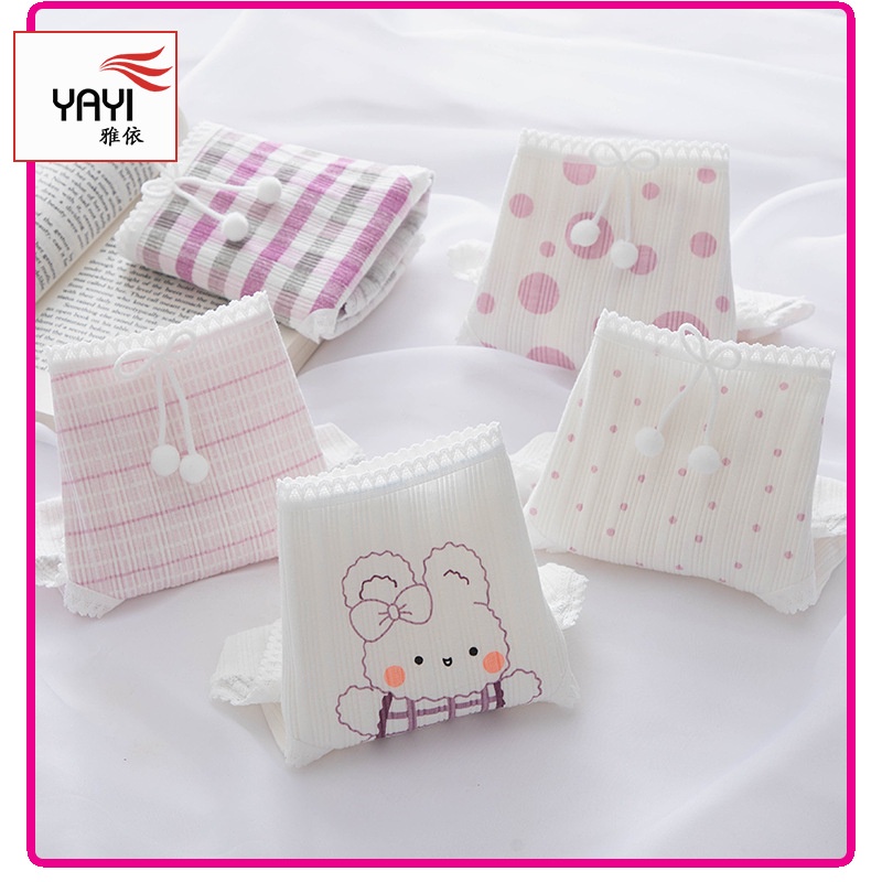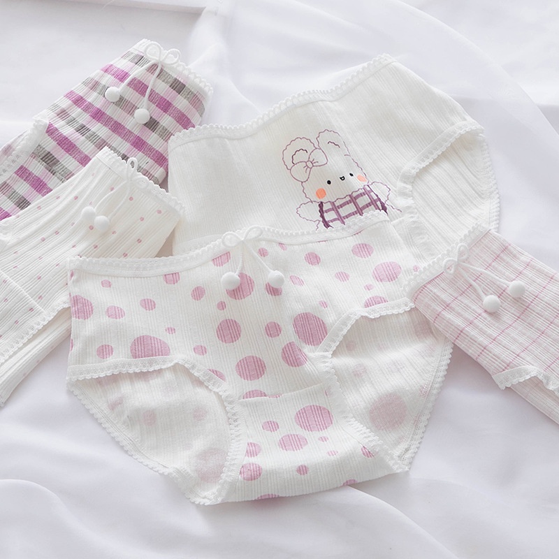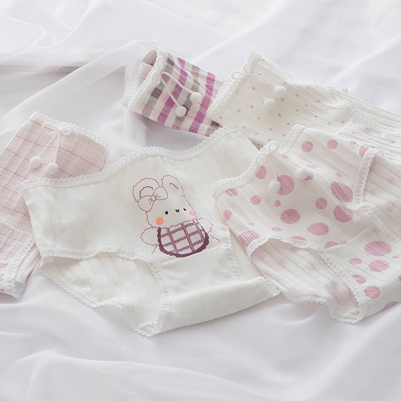 กางเกงในสไตล์ญี่ปุ่น ลายสีม่วง wave dot น่ารักกระต่ายน้อย กางเกงในนักเรียนหญิง