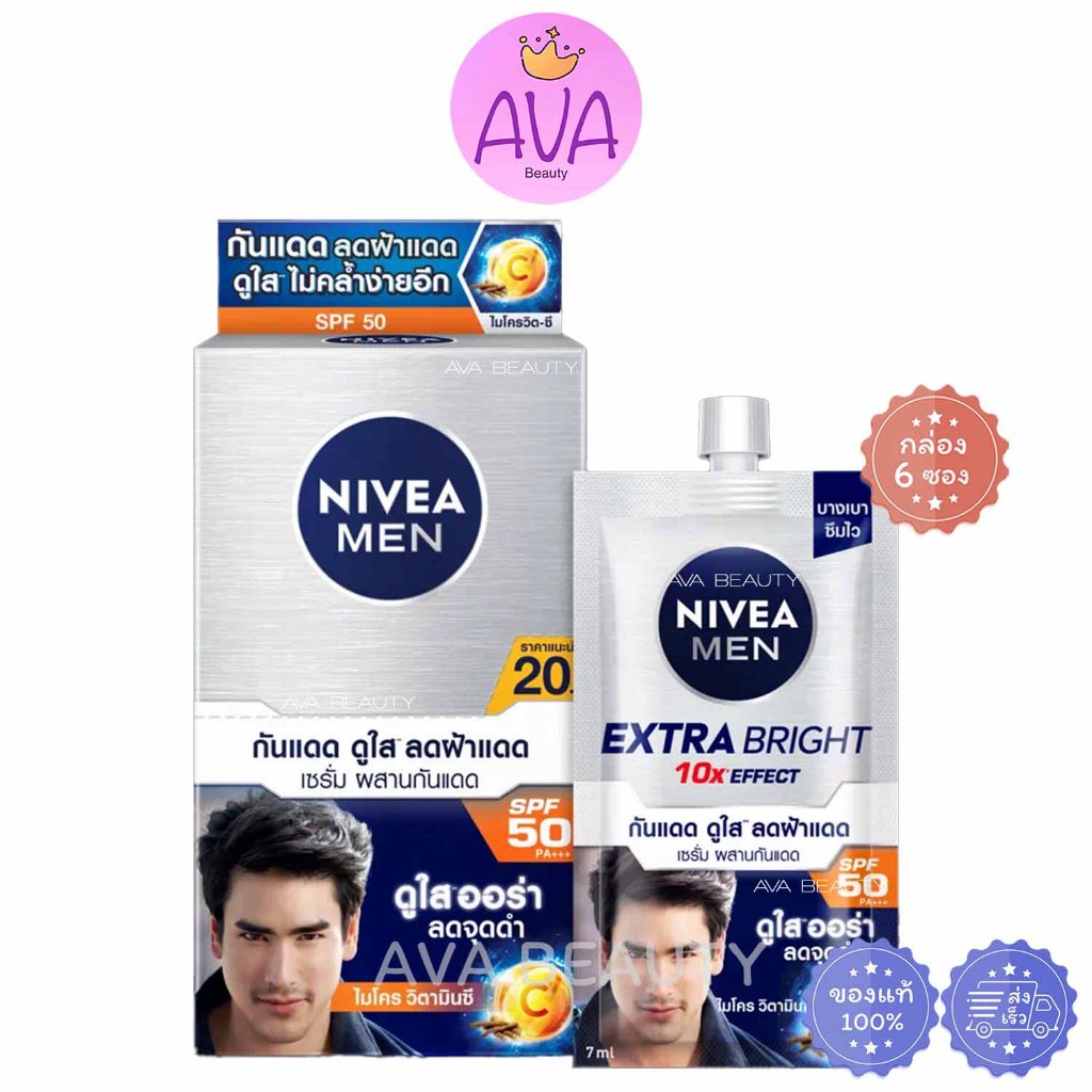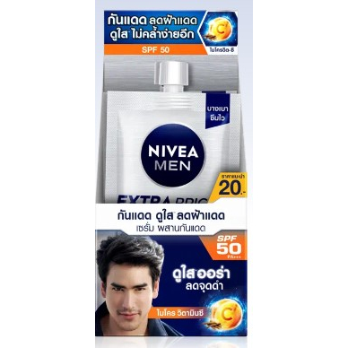 (6ซอง/กล่อง) Nivea Men Extra Bright นีเวีย เมน เอ็กซ์ตร้า ไบรท์ เฟซ เซรั่ม SPF50 PA+++ [6436]