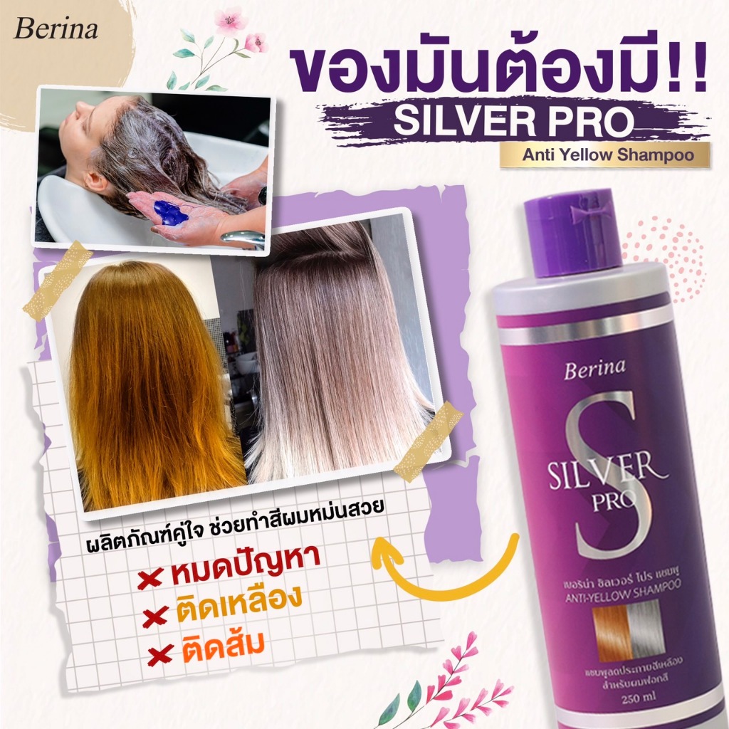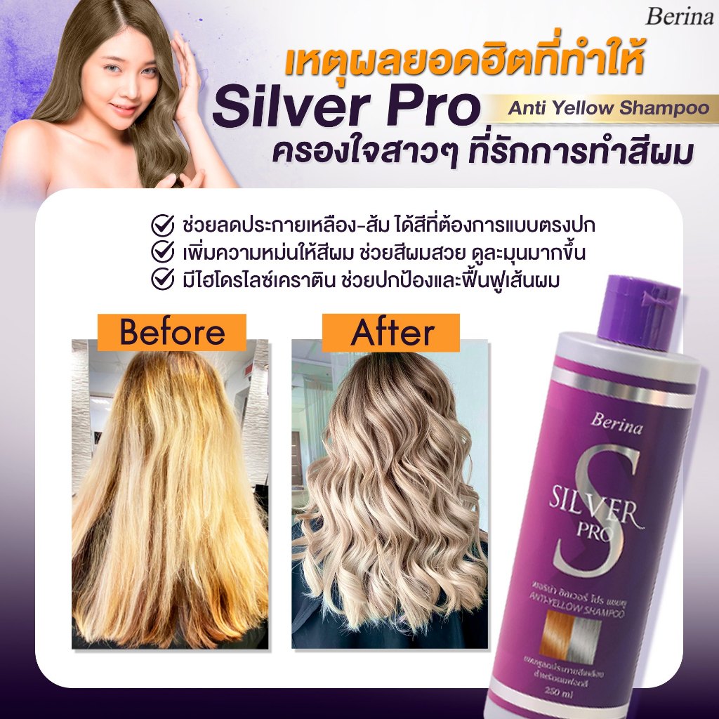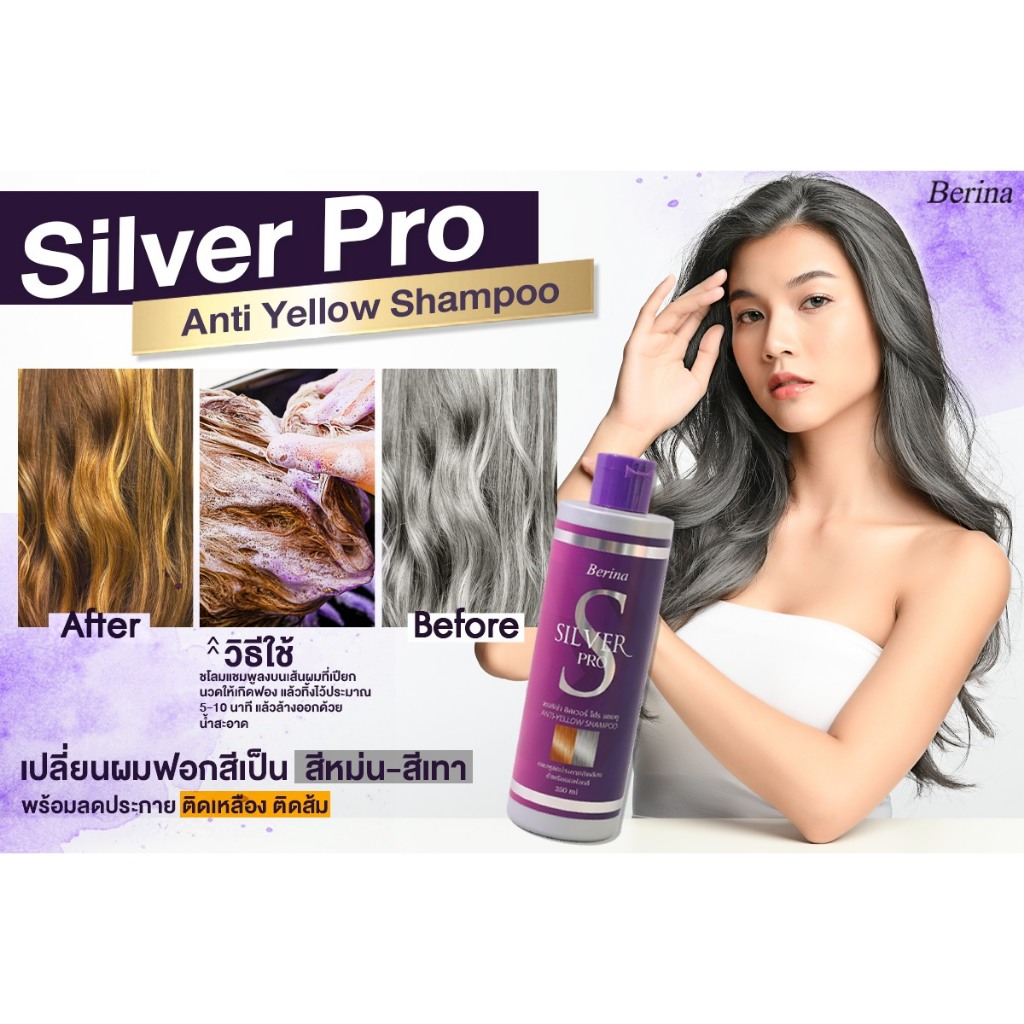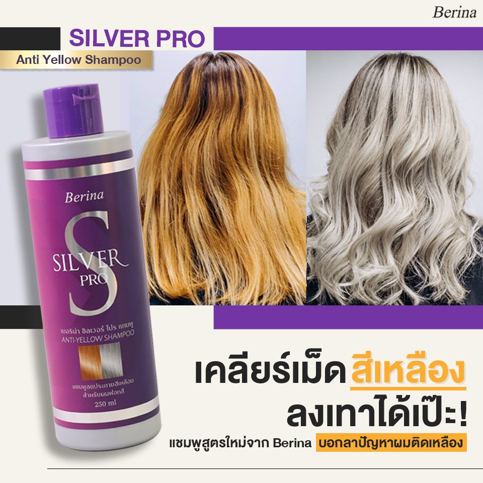 (250ml.) Berina Silver ProAnti Shampoo เบอริน่า ซิลเวอร์ โปร แชมพูขวดม่วง สำหรับผมฟอกสี [0039]