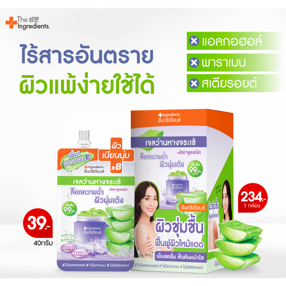 (6ซอง/กล่อง) The Ingredients ดิ อินกรีเดียนส์ อโล-ไฮยา คูลลิ่ง เจลว่านหางจระเข้ + ไฮยาลูรอนิค [3550]