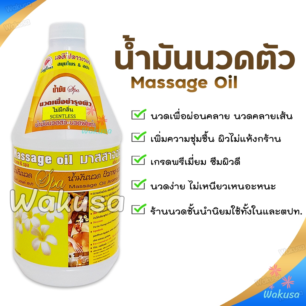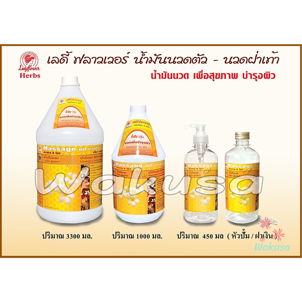 [ล็อตใหม่] Ladyflower น้ำมันนวดตัว ออยนวดอโรมาสปา 1000ml เกรดพรีเมี่ยม ไม่เหนียวเหนอะหนะ Massage Oil