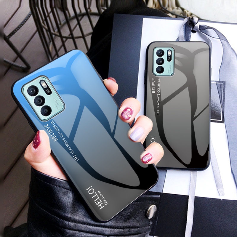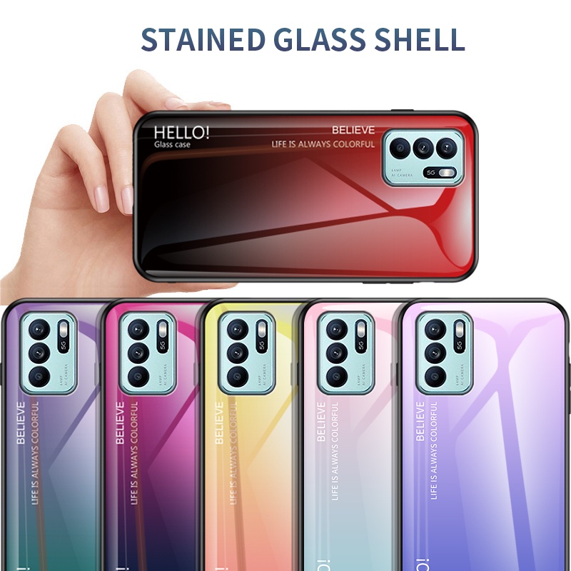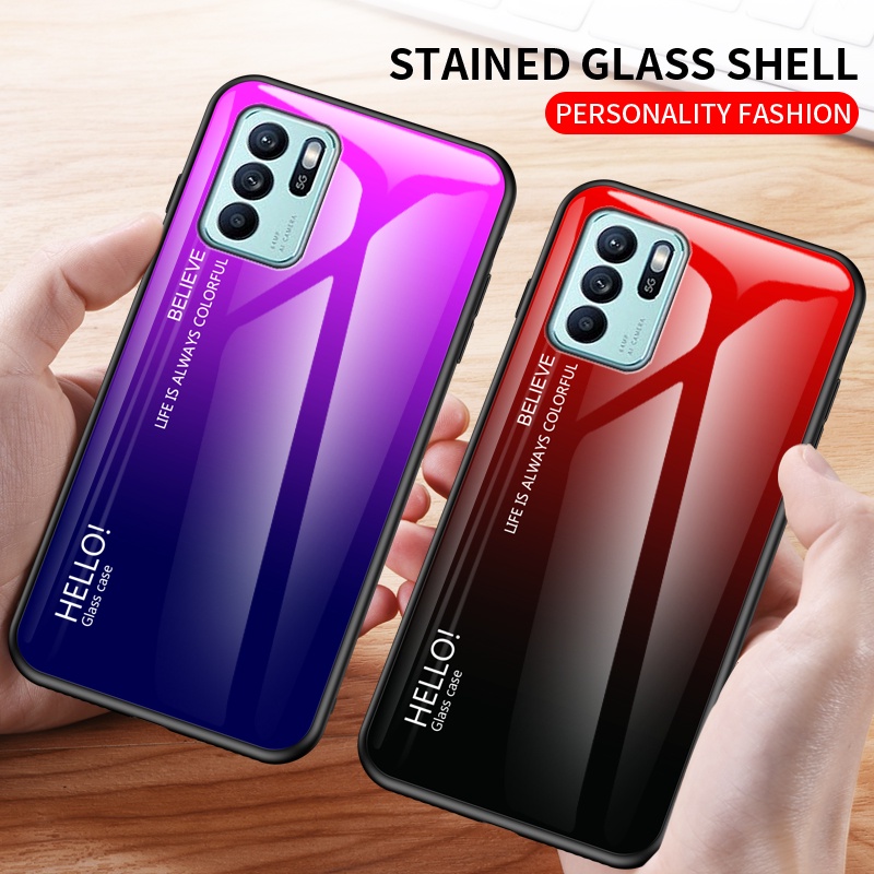 OPPO Reno6 Z 5G กรณีไล่ระดับสีกระจกนิรภัย Hard เคสโทรศัพท์ฝาหลัง OPPO Reno 6Z Reno6Z ปลอก