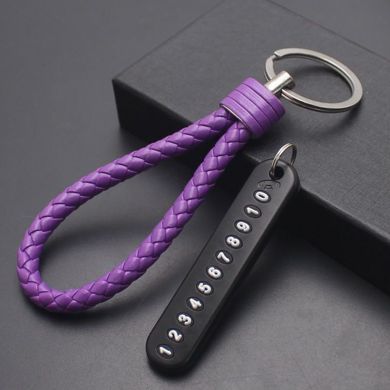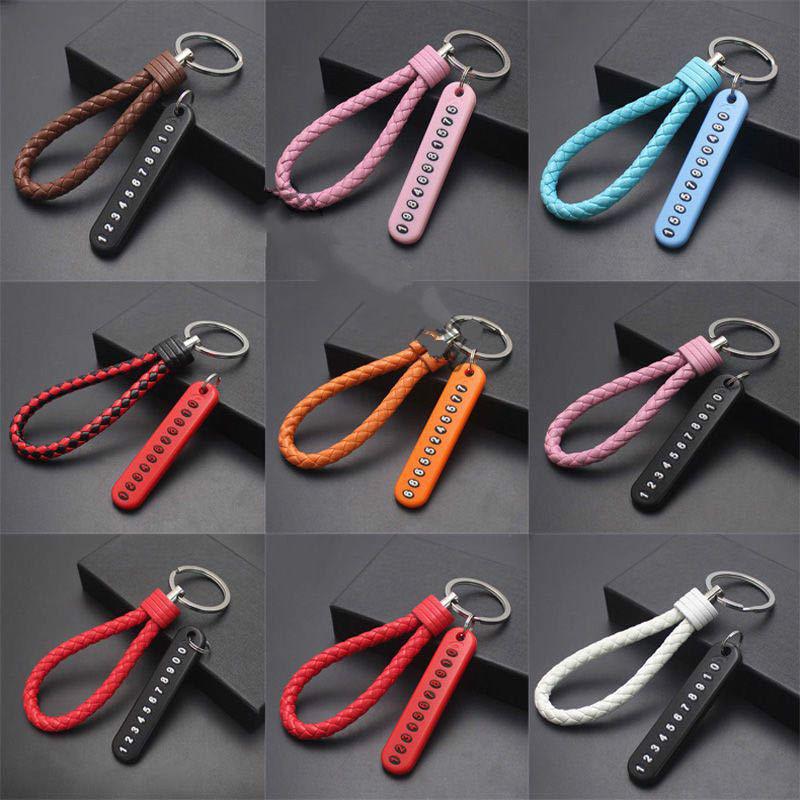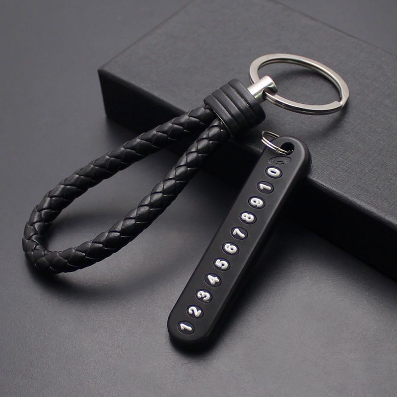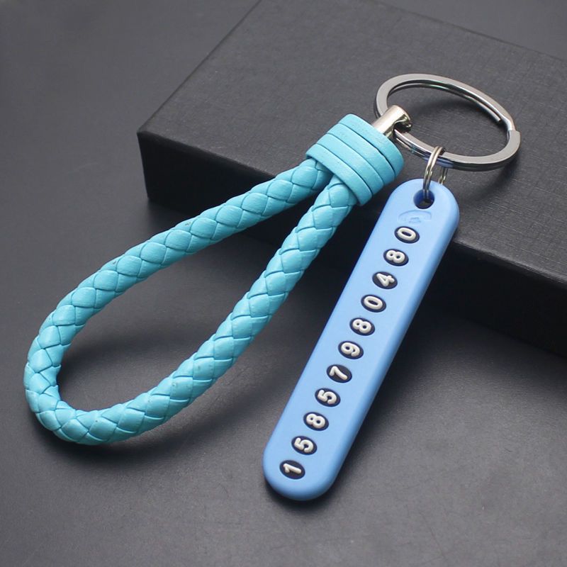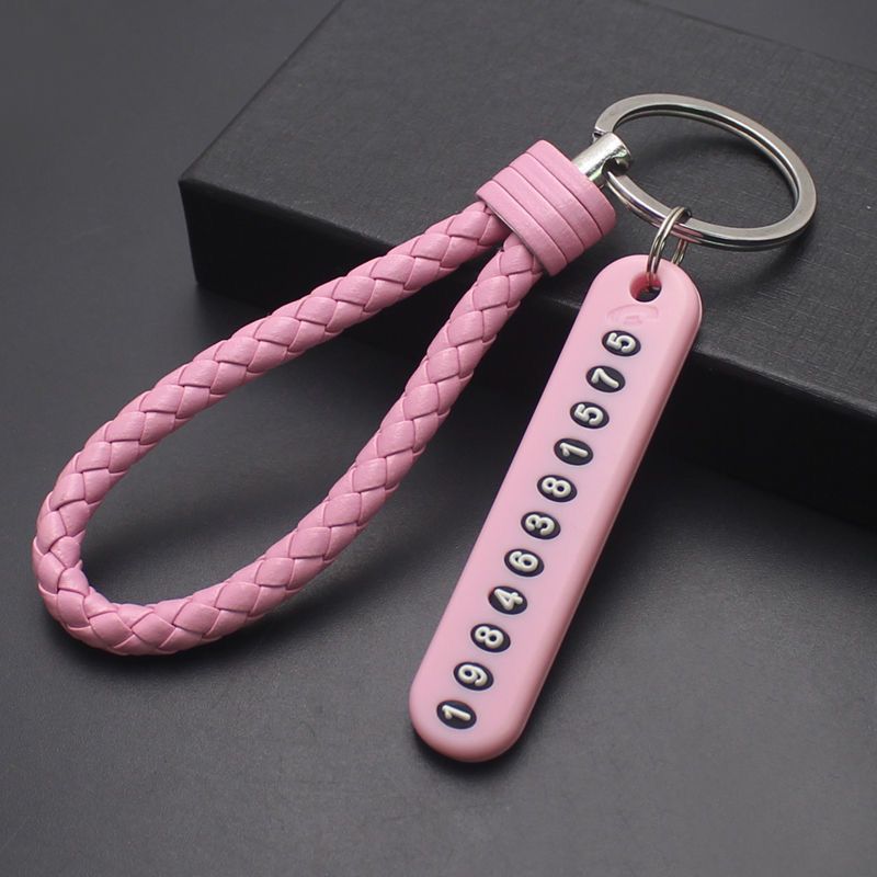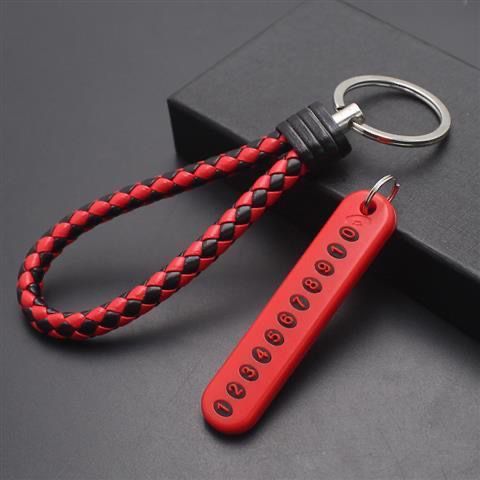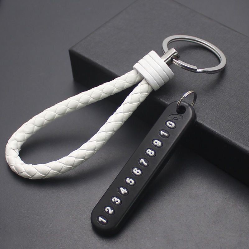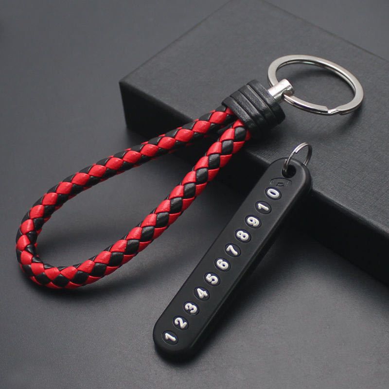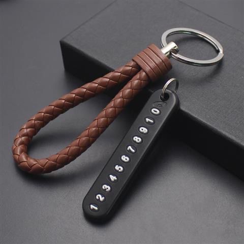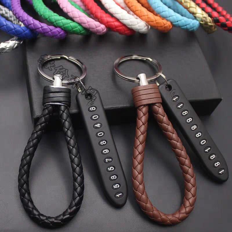 พวงกุญแจรถยนต์ สายหนังทอ กันหาย พร้อมหมายเลขโทรศัพท์ DIY