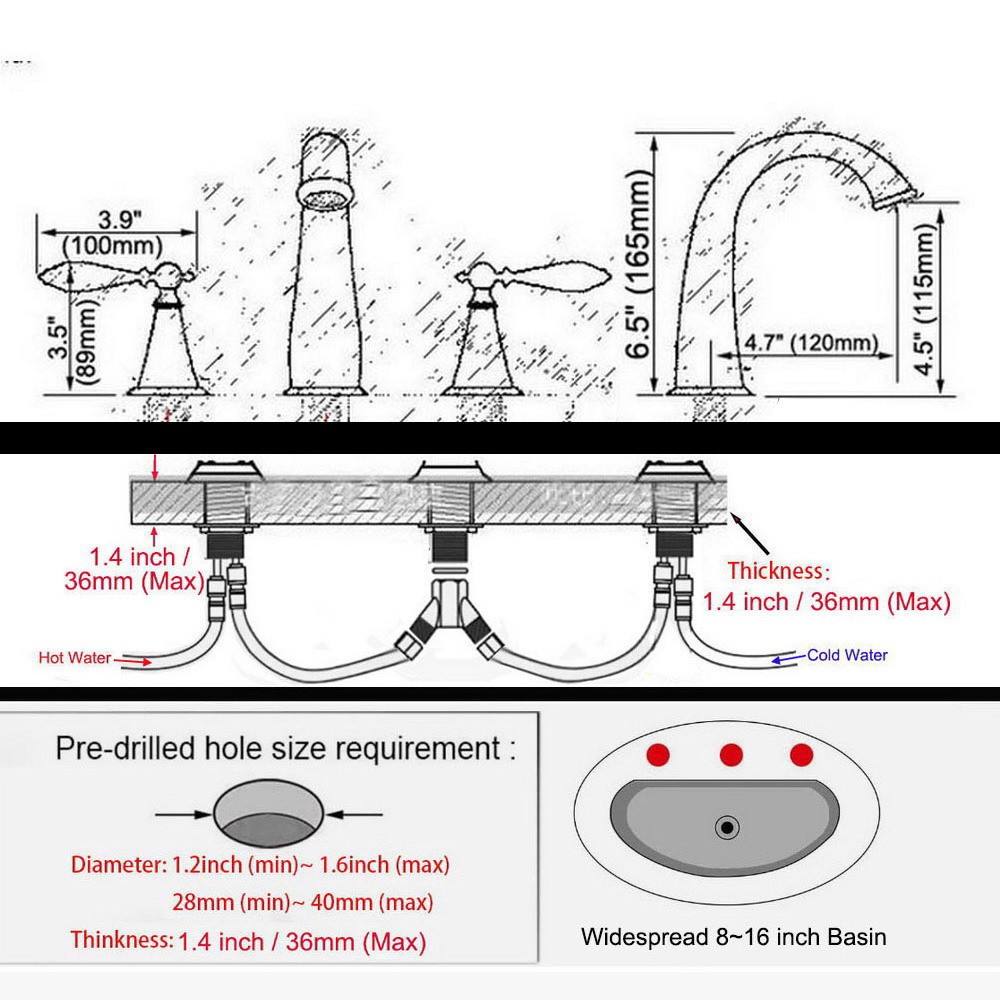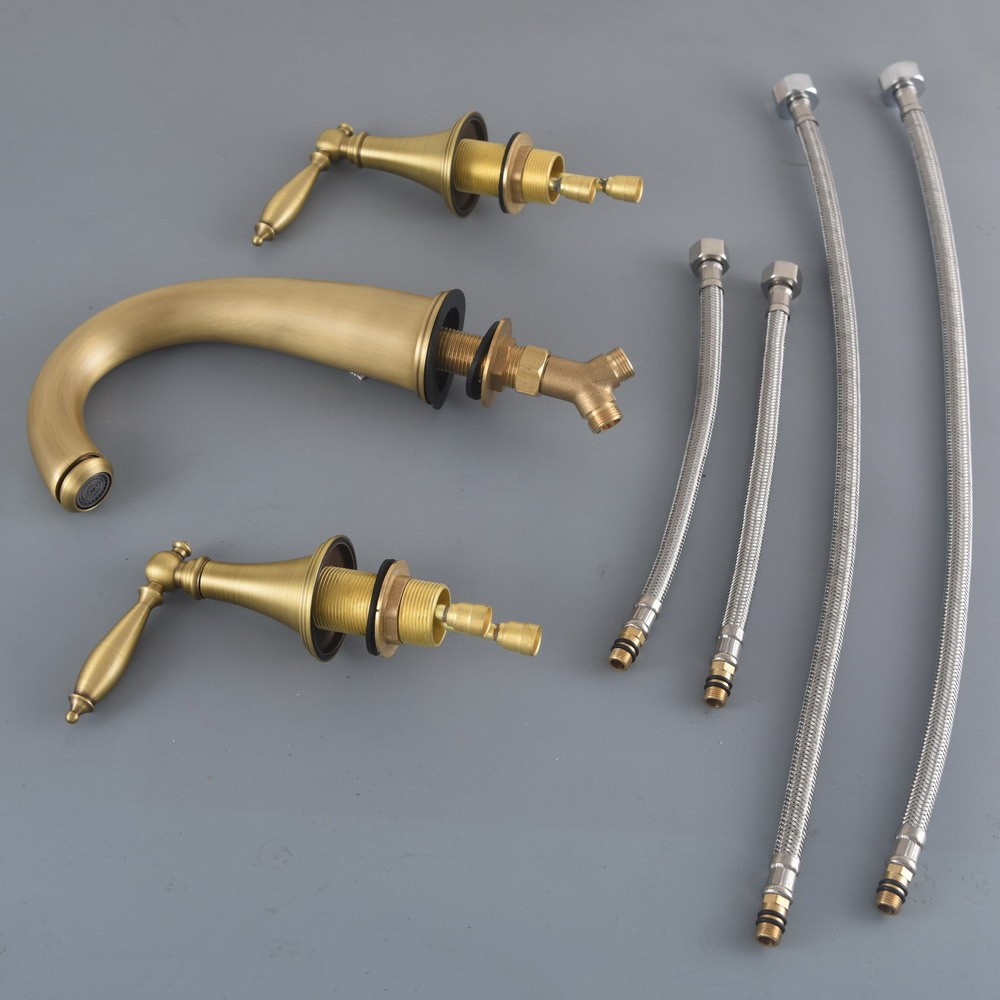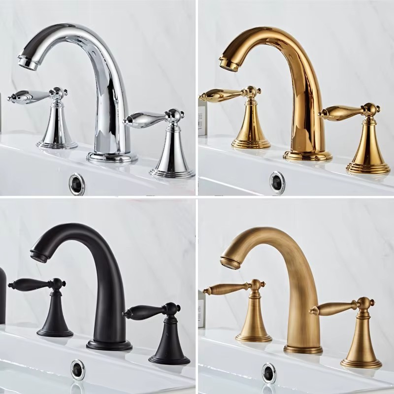 สไตล์นอร์ดิกก๊อกน้ําอ่างล้างหน้า3หลุมห้องน้ําอ่างล้างจานก๊อกน้ําดาดฟ้าติดตั้งเย็นร้อนวินเทจผสมก๊อกอ่างอาบน้ําก๊อกน้ํา zgf020