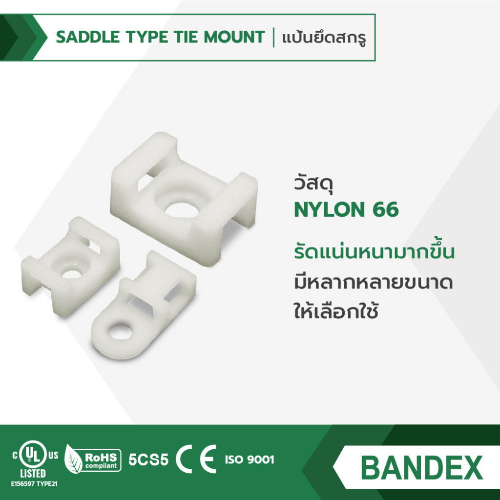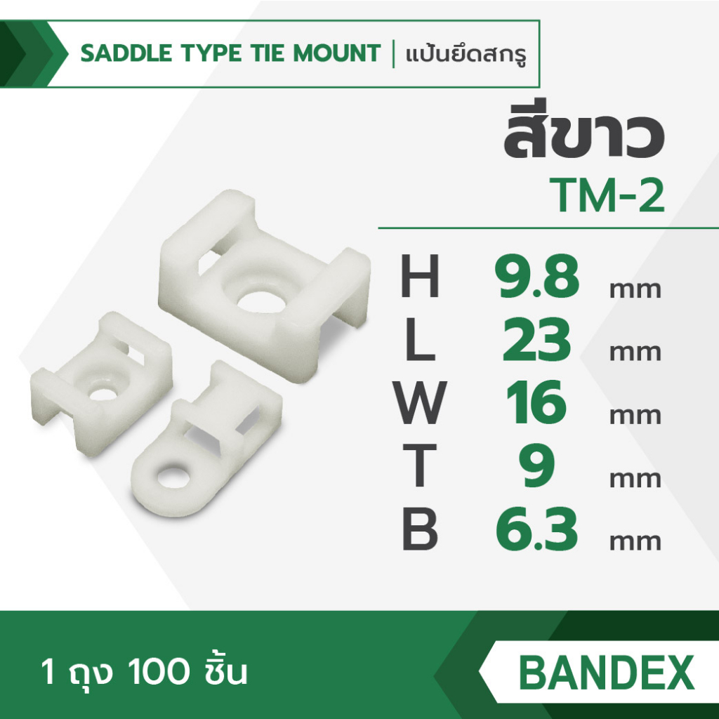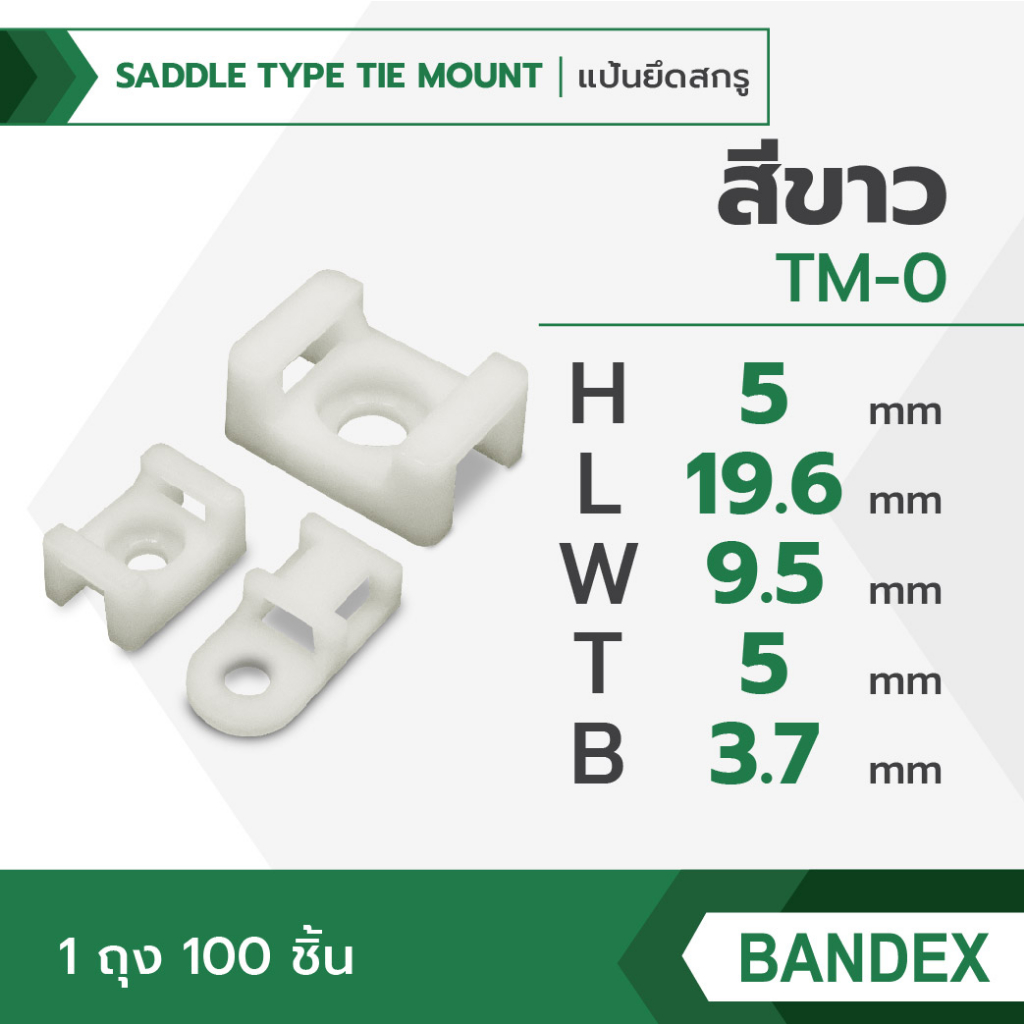 BANDEX แป้นยึดสกรู แป้นยึดสายไฟ ตัวล็อคสายไฟ ตัวยึดเคเบิ้ลไทร์ 1ถุง/100ชิ้น