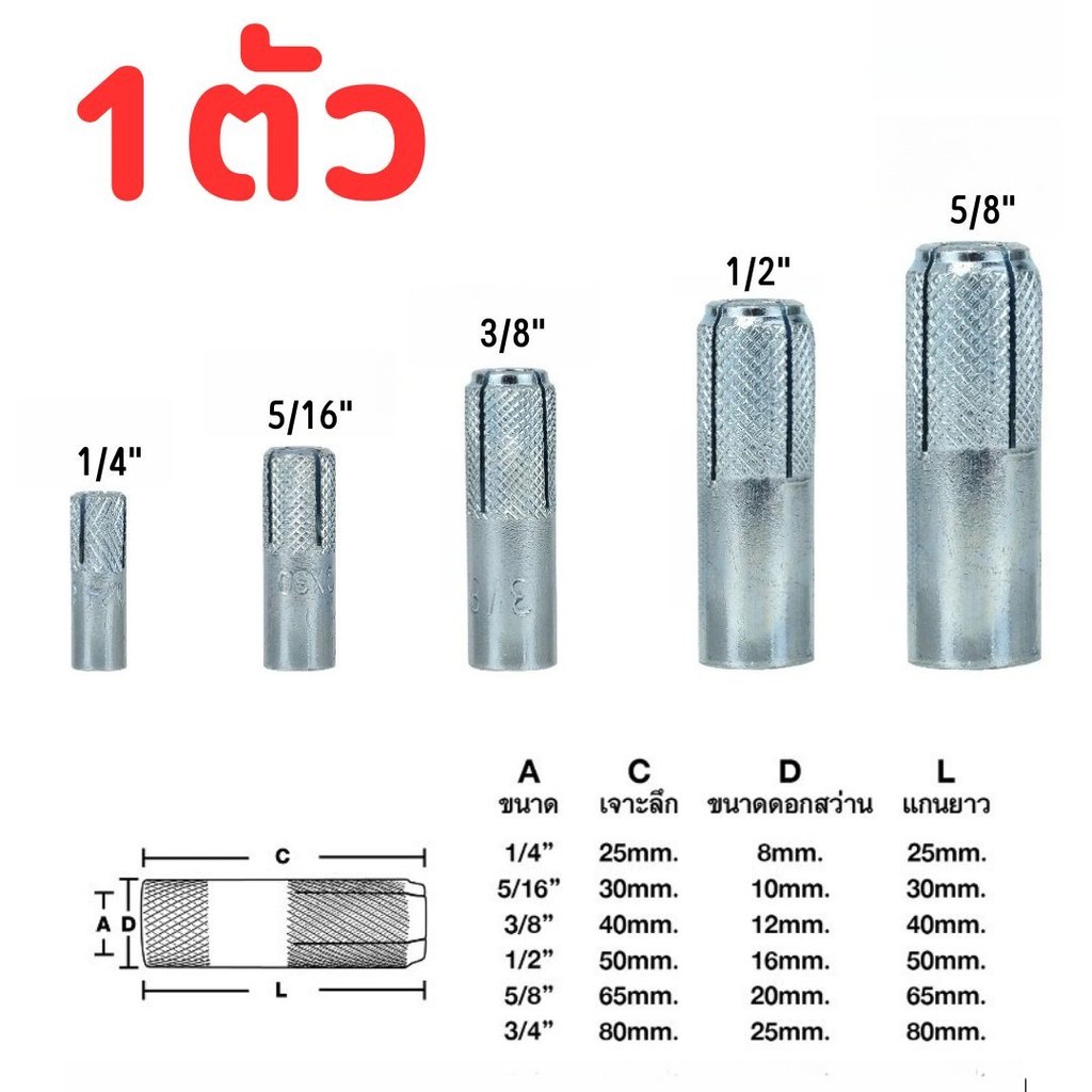 พุกดรอปอิน พุกฝัง ขนาด 1/4" 5/16" 3/8" 1/2" 5/8" (1ตัว)