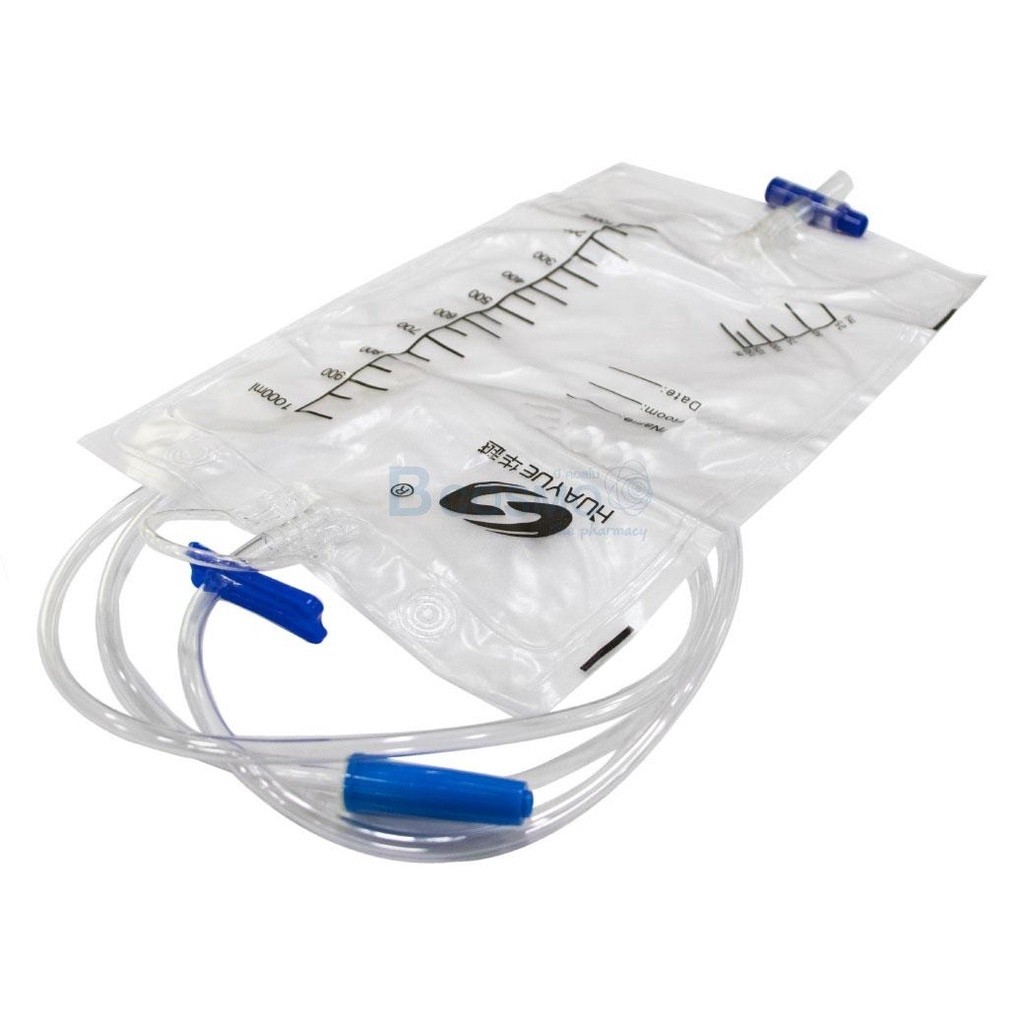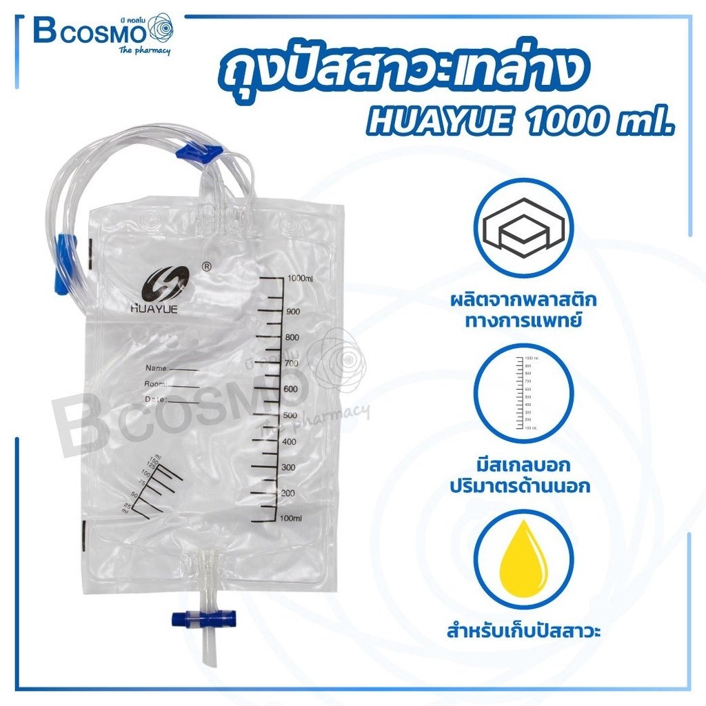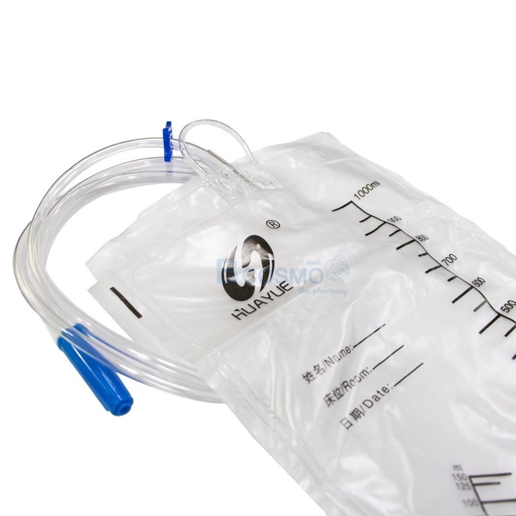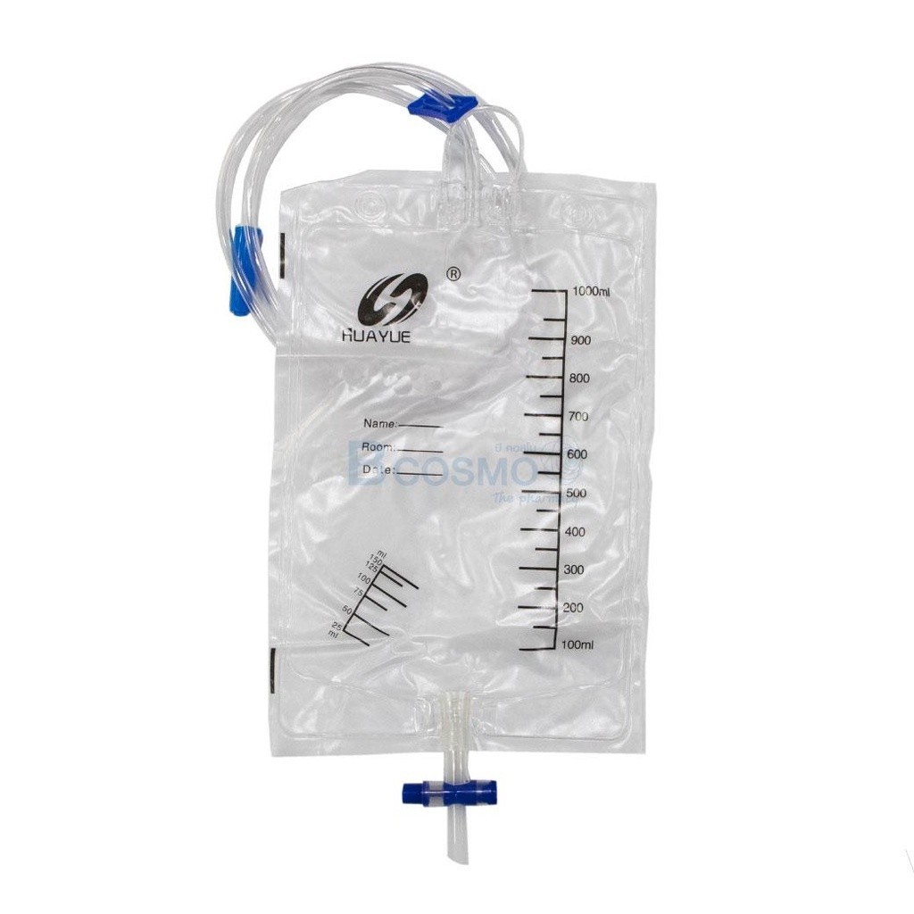 ถุงปัสสาวะ ถุงปัสสาวะเทล่าง HUAYUE 1000 Ml. มีสเกลบอกปริมาตร ผลิตจากพลาสติกทางการแพทย์
