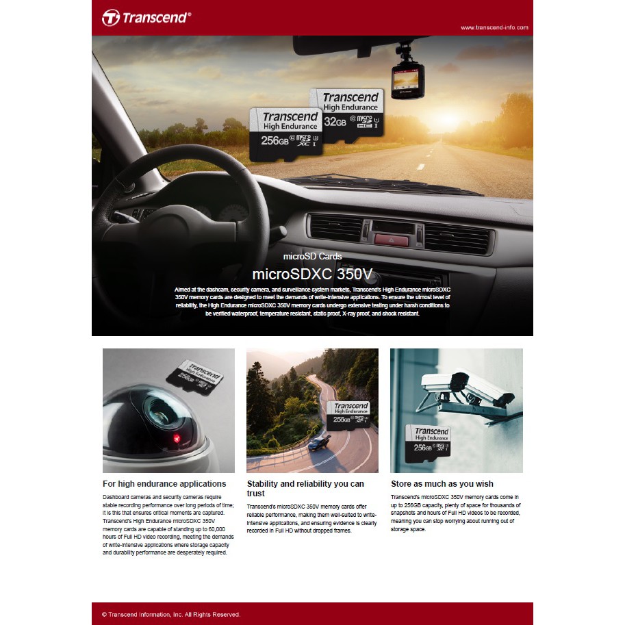 Transcend MicroSD Card 256GB :High Endurance : USD350V -รับประกัน 2 ปี-มีใบกำกับภาษี-TS256GUSD350V