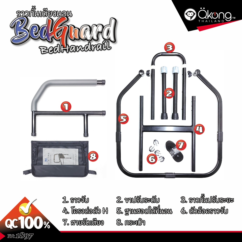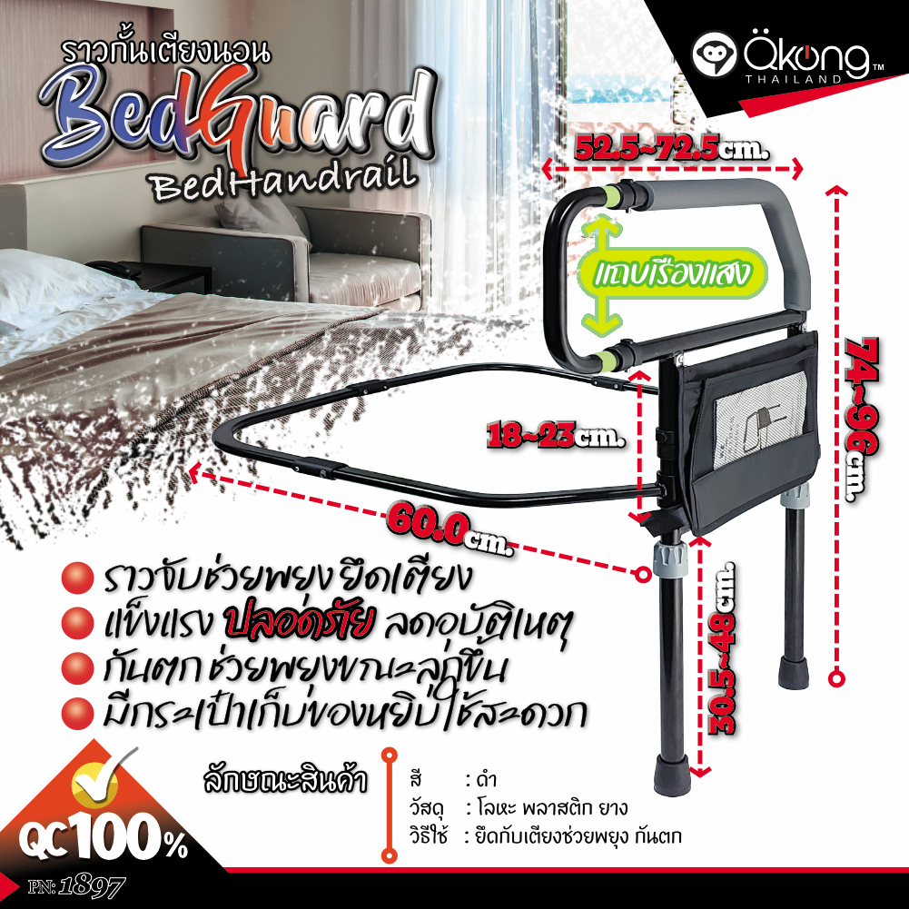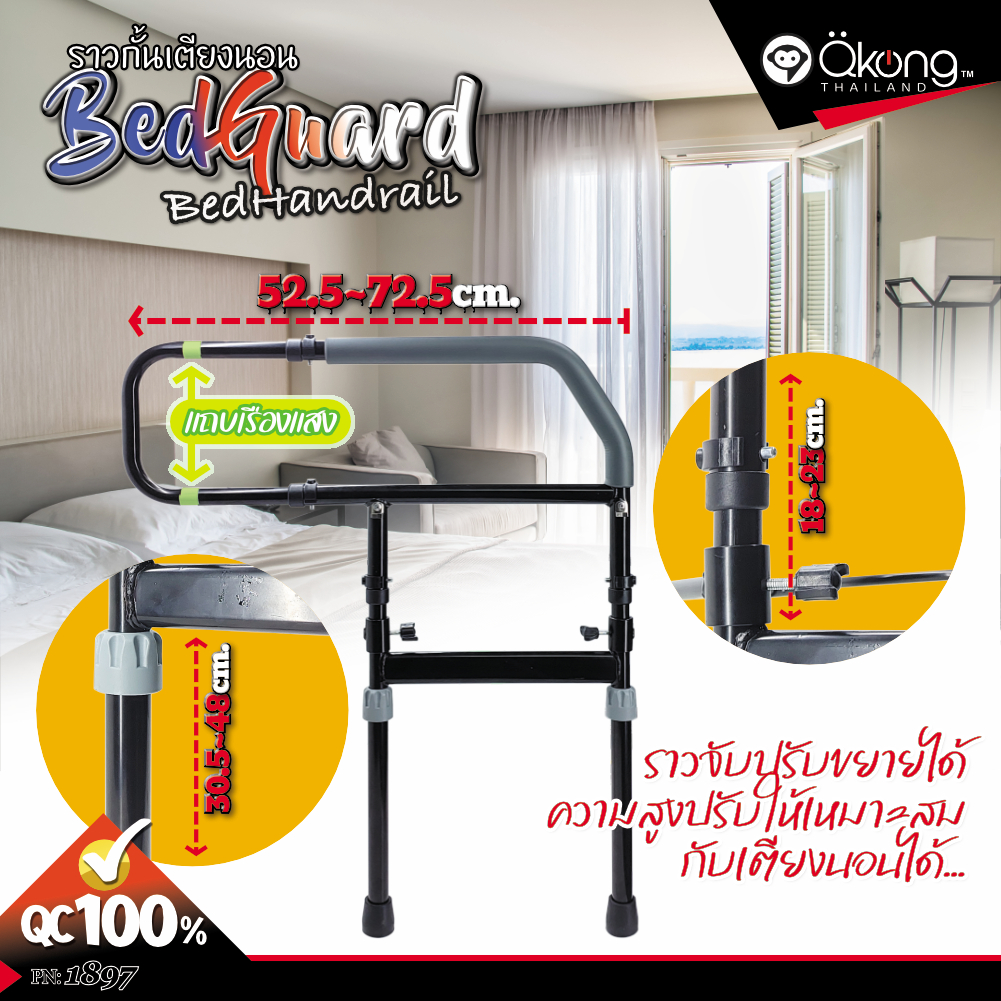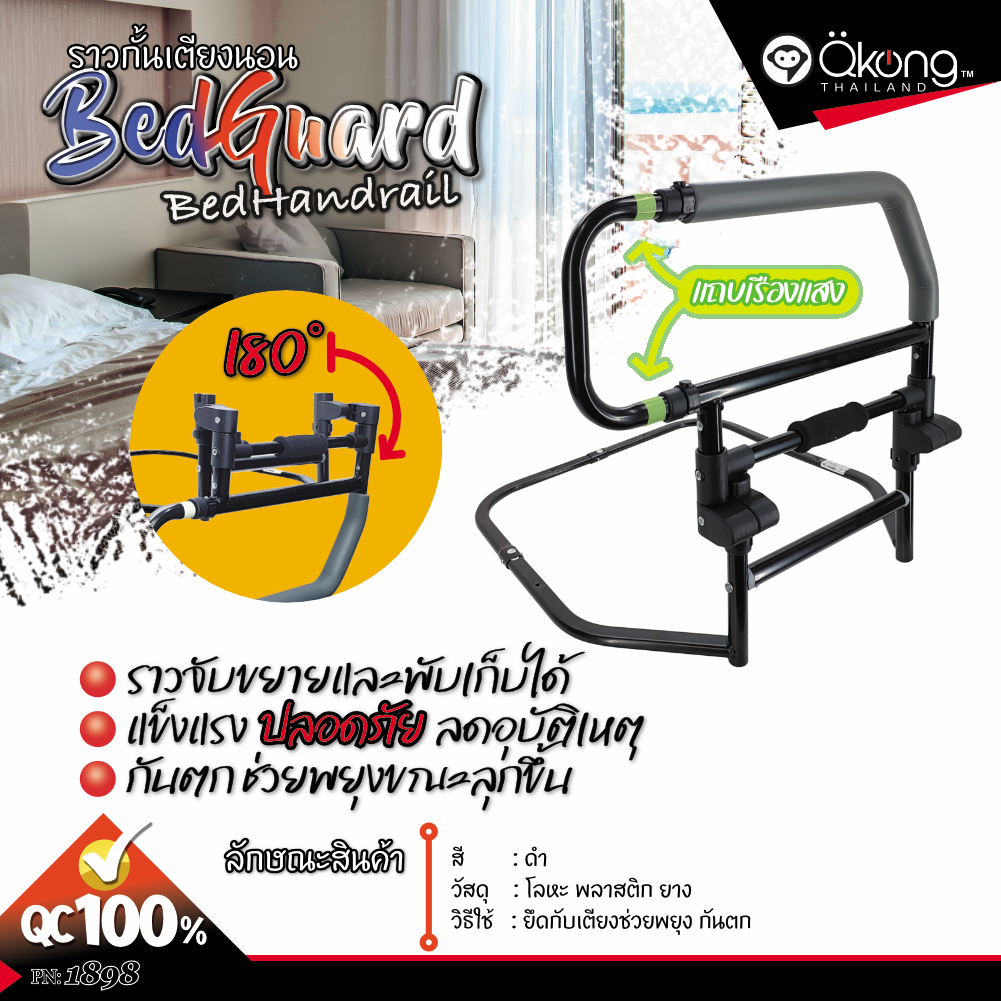ราวกั้นเตียงพร้อมแถบเรืองแสง พับเก็บได้ ราวเสริมข้างเตียงป้องกันการพลัดตก ใช้ได้กับเตียงทุกรุ่น ปรับระดับได้หลายฟังก์ชัน