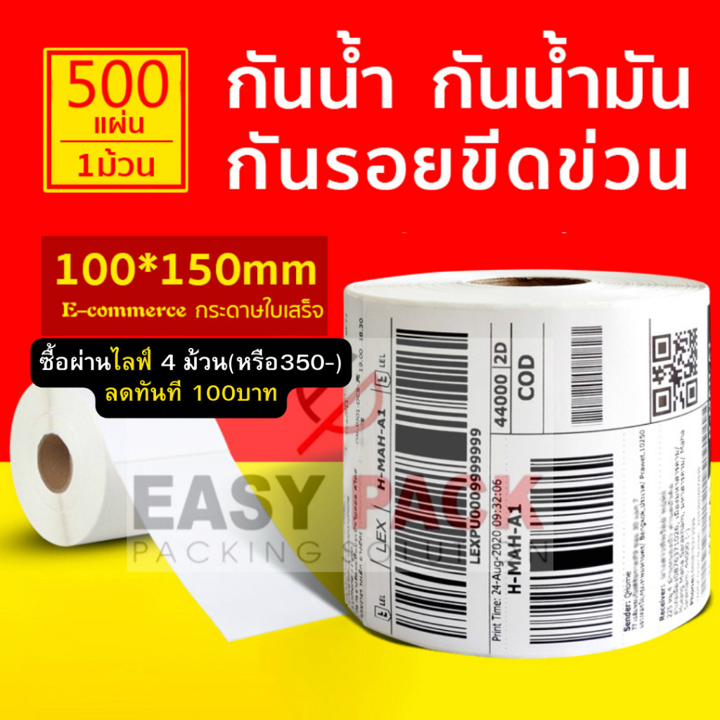 ( 6 ม้วน ) สติ๊กเกอร์ความร้ อน 100x150x500 บาร์โค้ด ลาเบล ใบปะหน้า Thermal paper Label Sticker