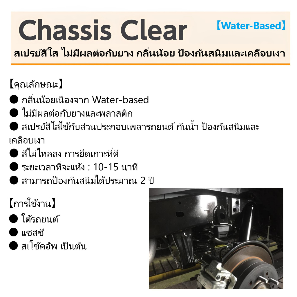 NX16 สีสเปรย์ สีใส กันสนิม ได้นาน กลิ่นน้อย ไม่มีผลต่อกับยางและพลาสติก Water Based เคลือบ แชสซี Chassis Clear / Ichinen