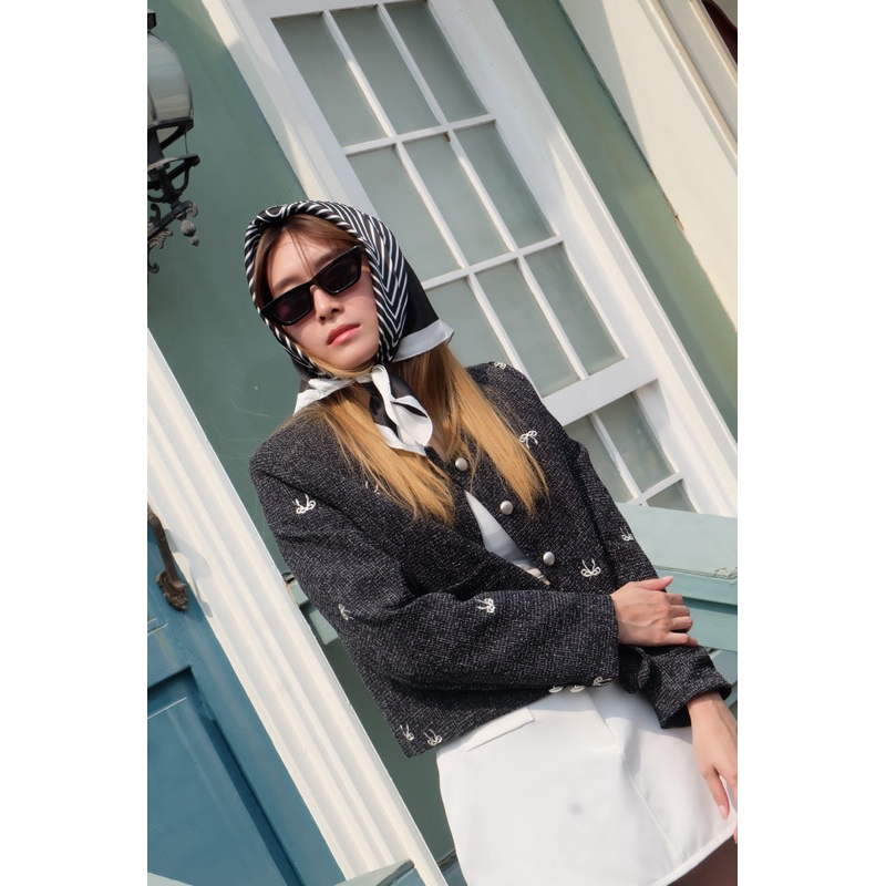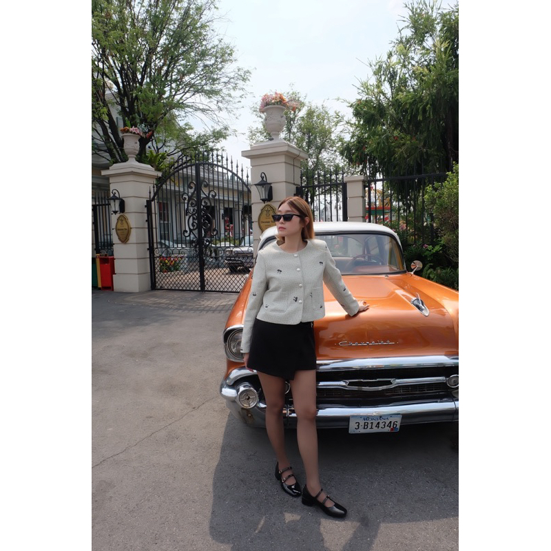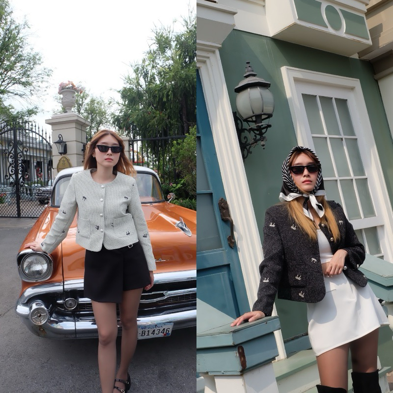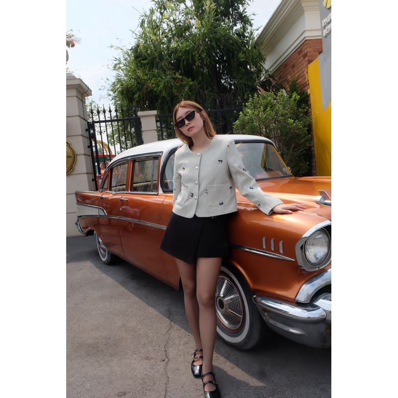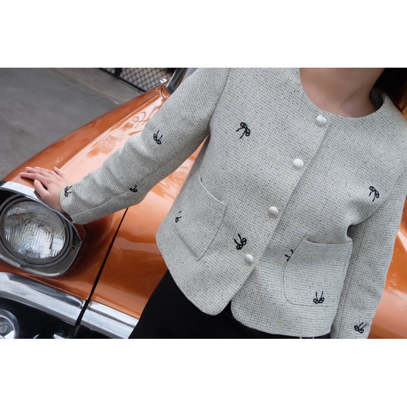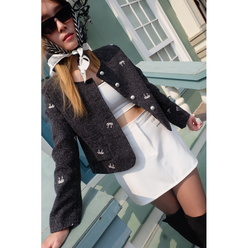 (ลดสูงสุด 100.- Shopee VDO) TWOMORROW ทรงสวย ใส่ง่าย หยิบใส่เมื่อไหร่ก็รอด!กิมมิค เก๋ๆ ดีเทลปักลายโบว์เล็ก แทรกสีตัดนิดๆ