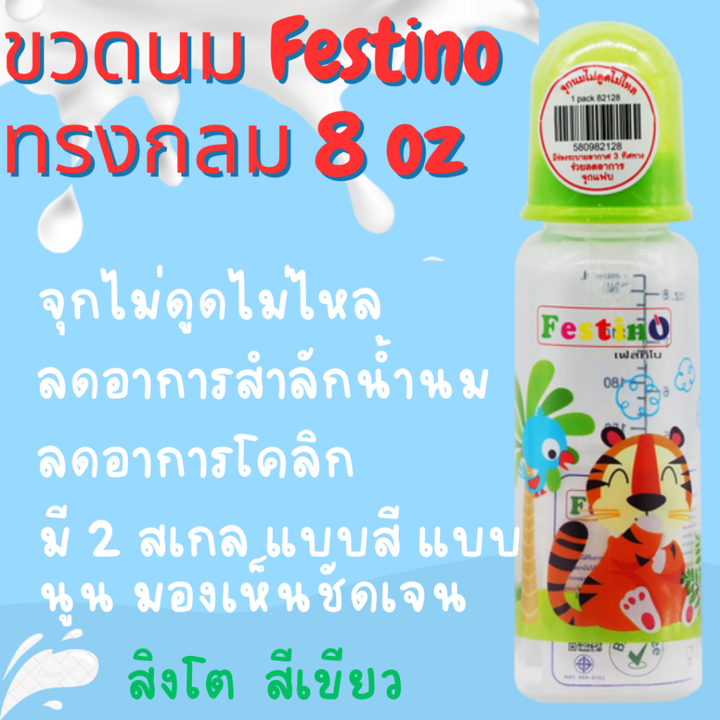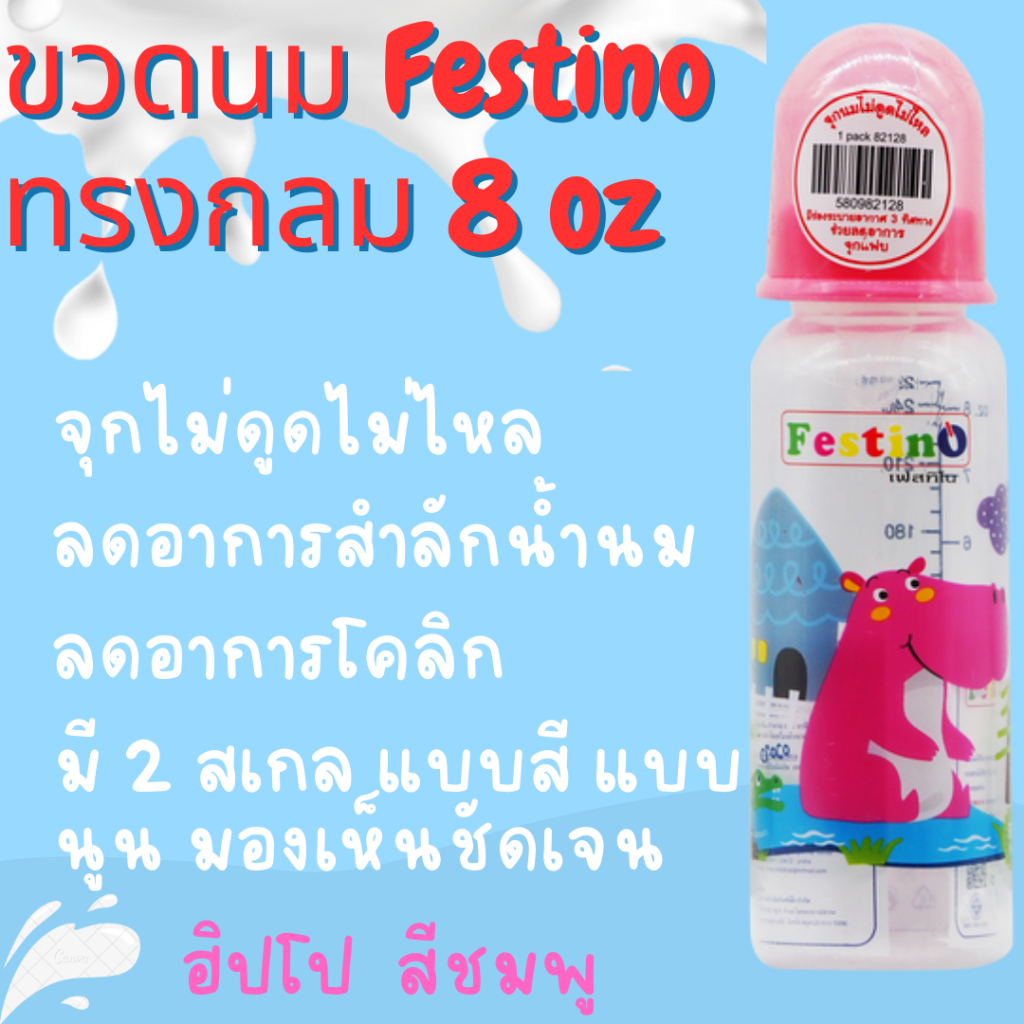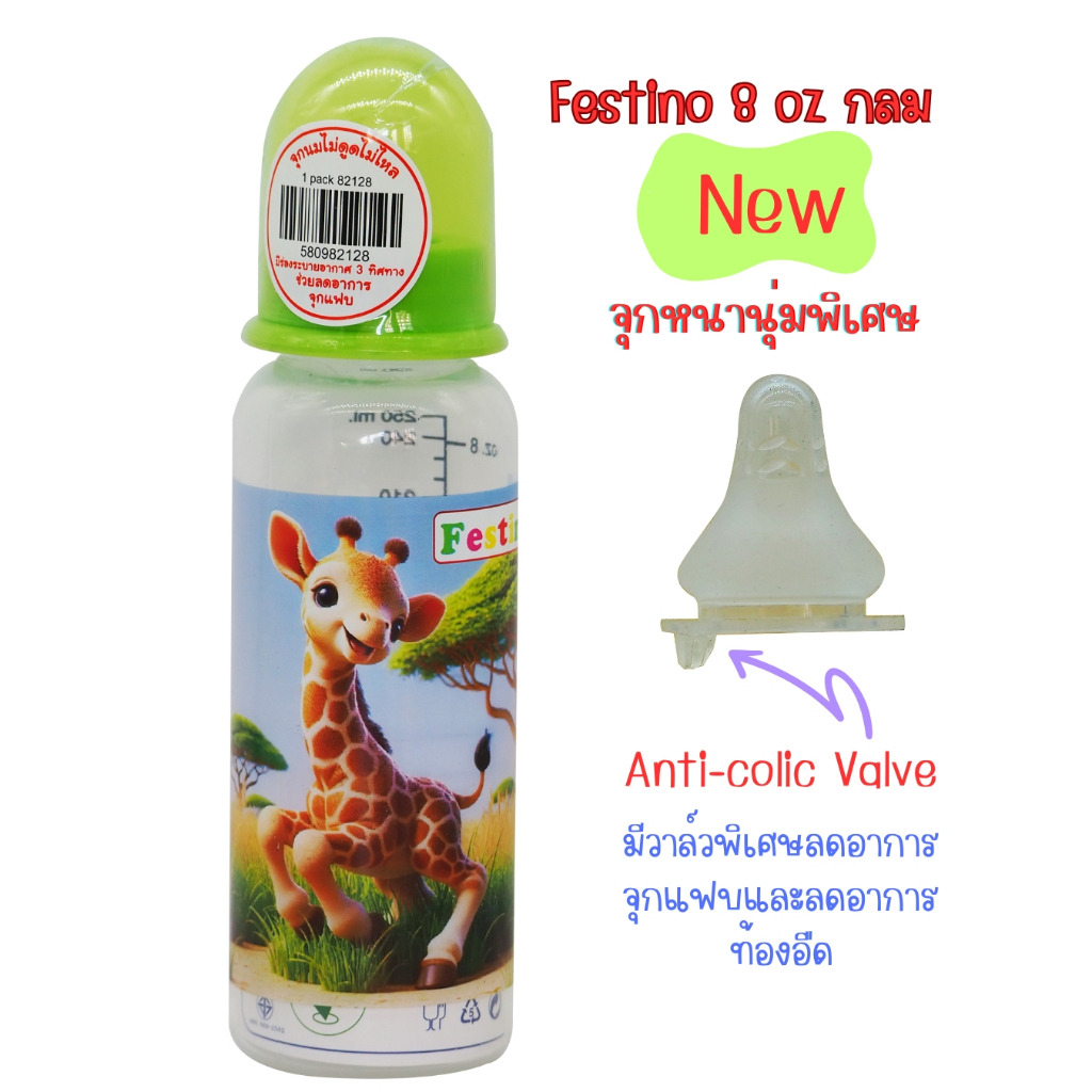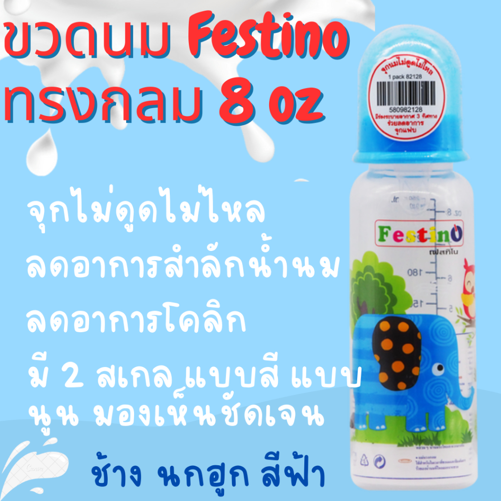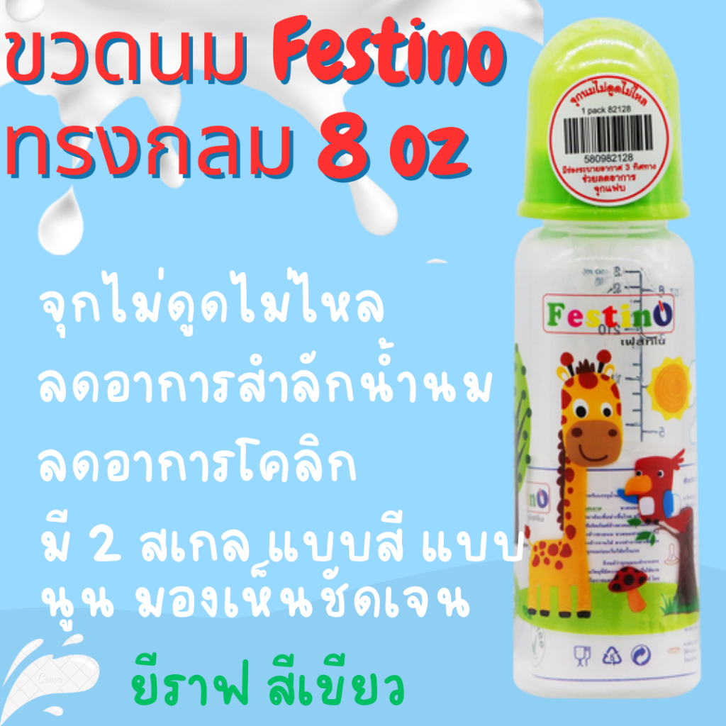 Festinoขวดนม 8ออนซ์ ทรงกลม คอแคบ จุกนมไซส์ L มีสเกล2แบบ