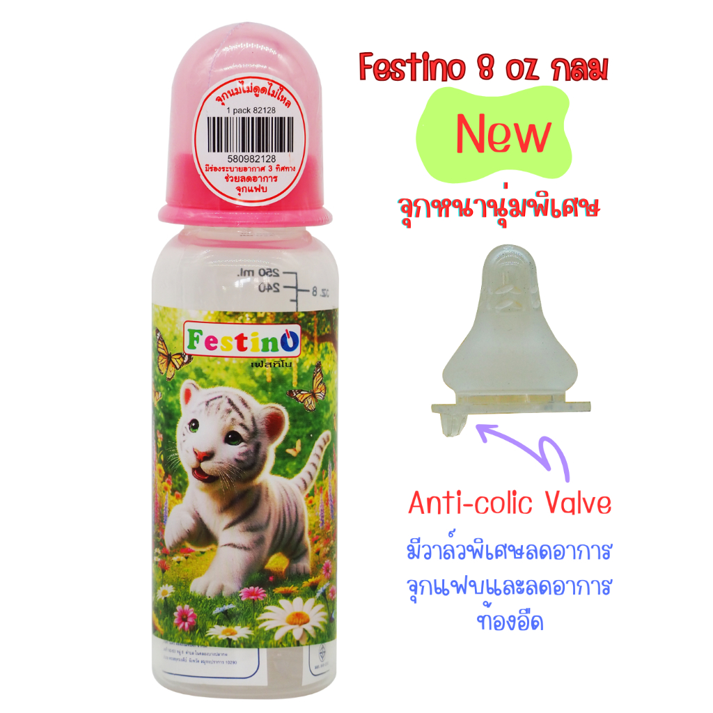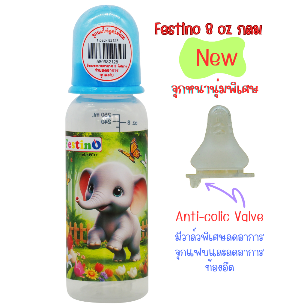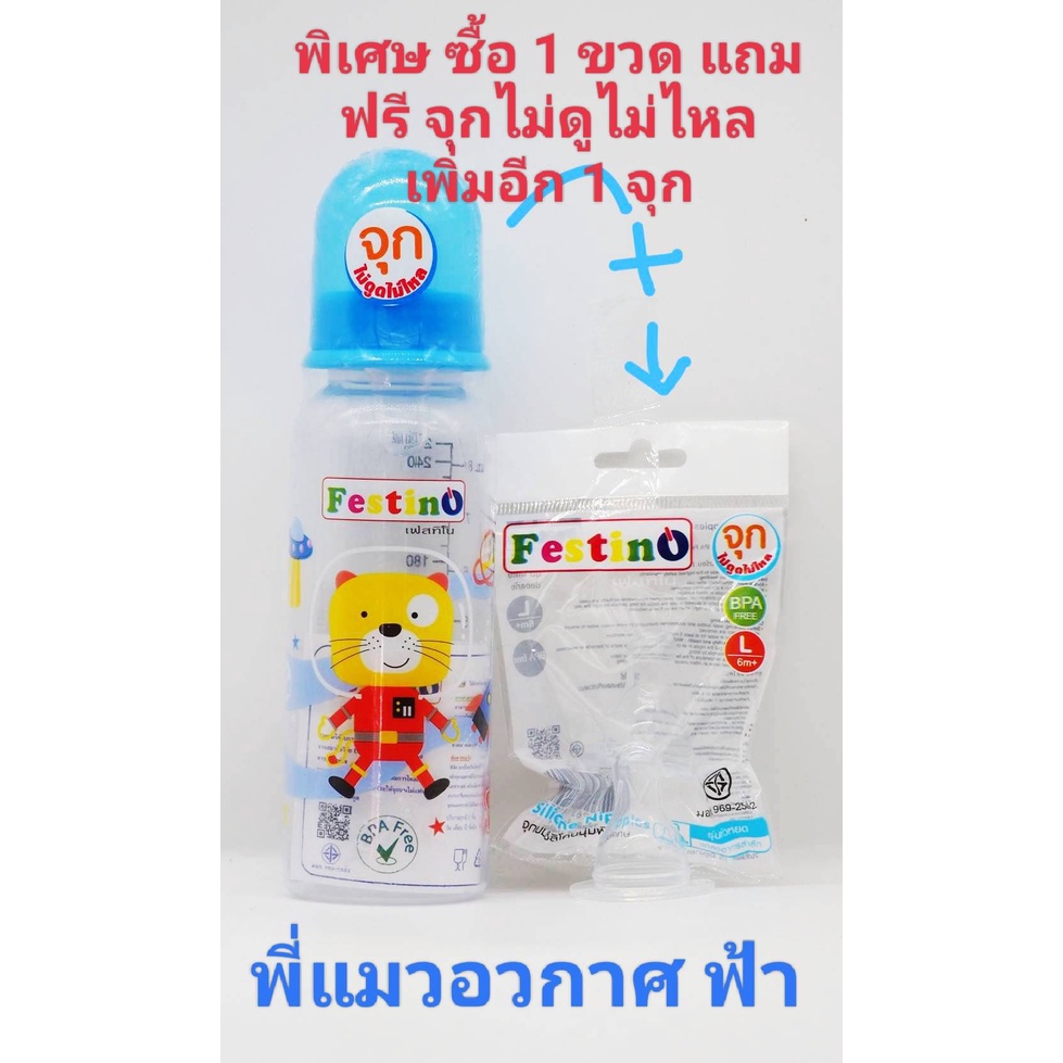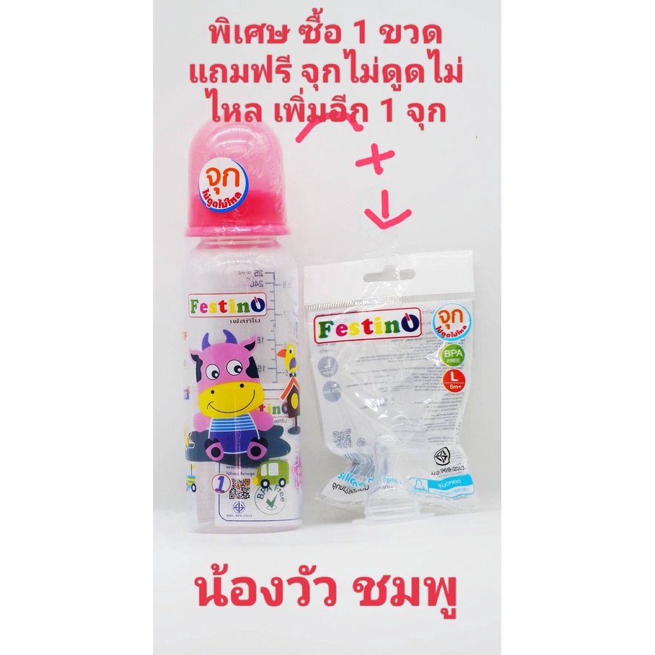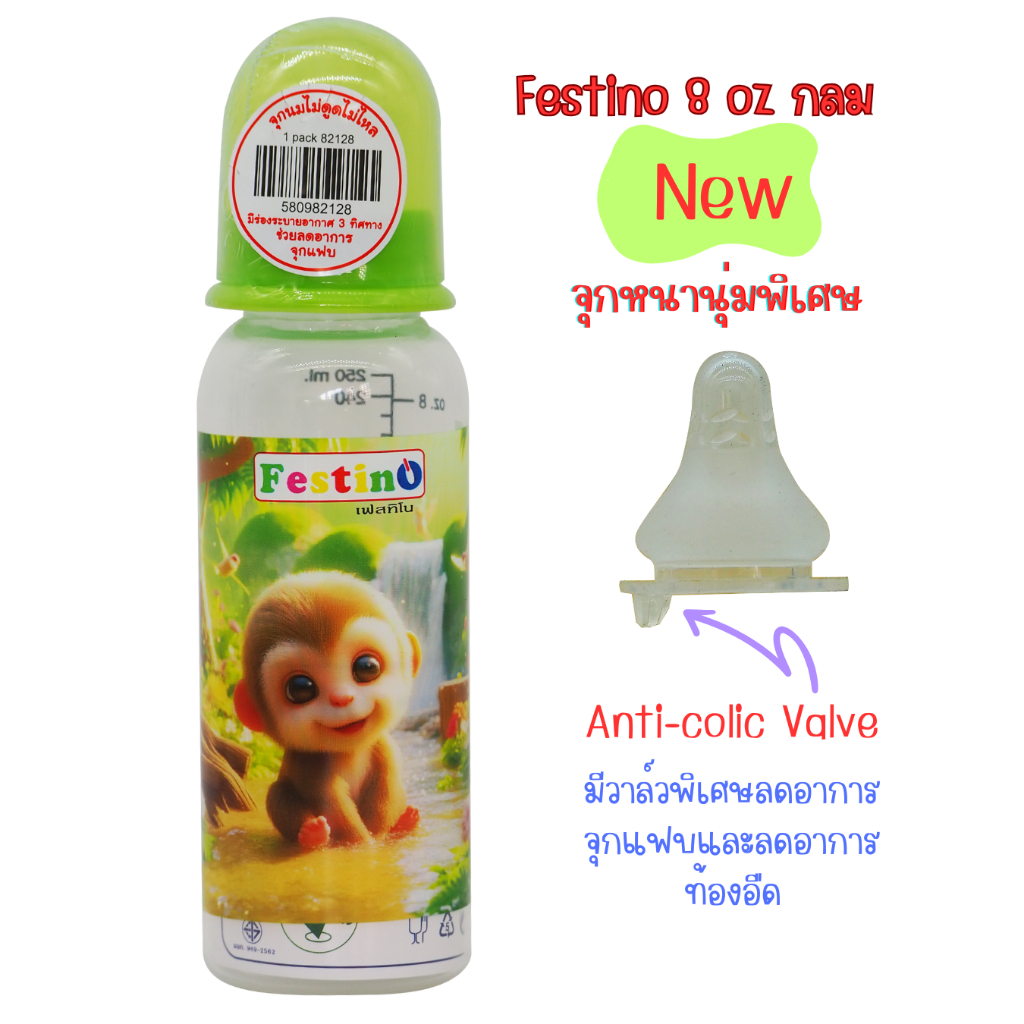 Festinoขวดนม 8ออนซ์ ทรงกลม คอแคบ จุกนมไซส์ L มีสเกล2แบบ