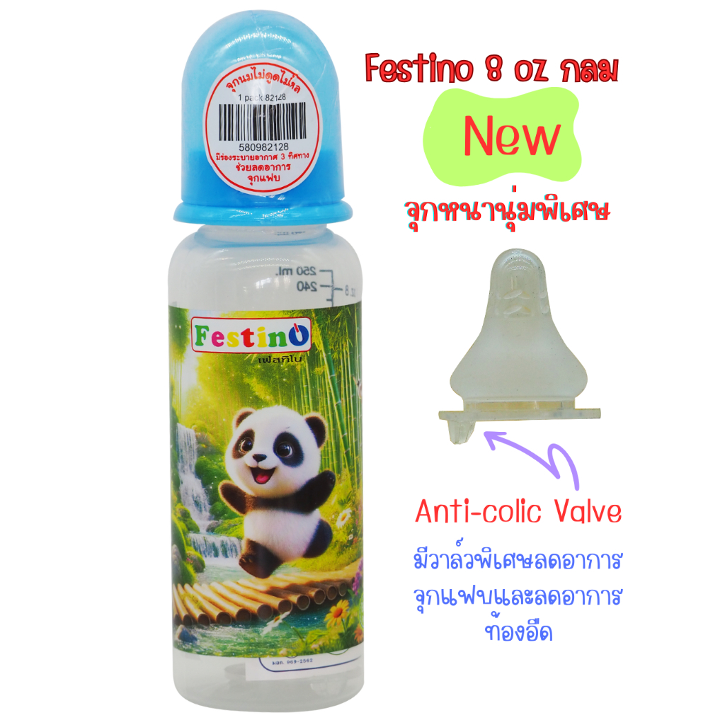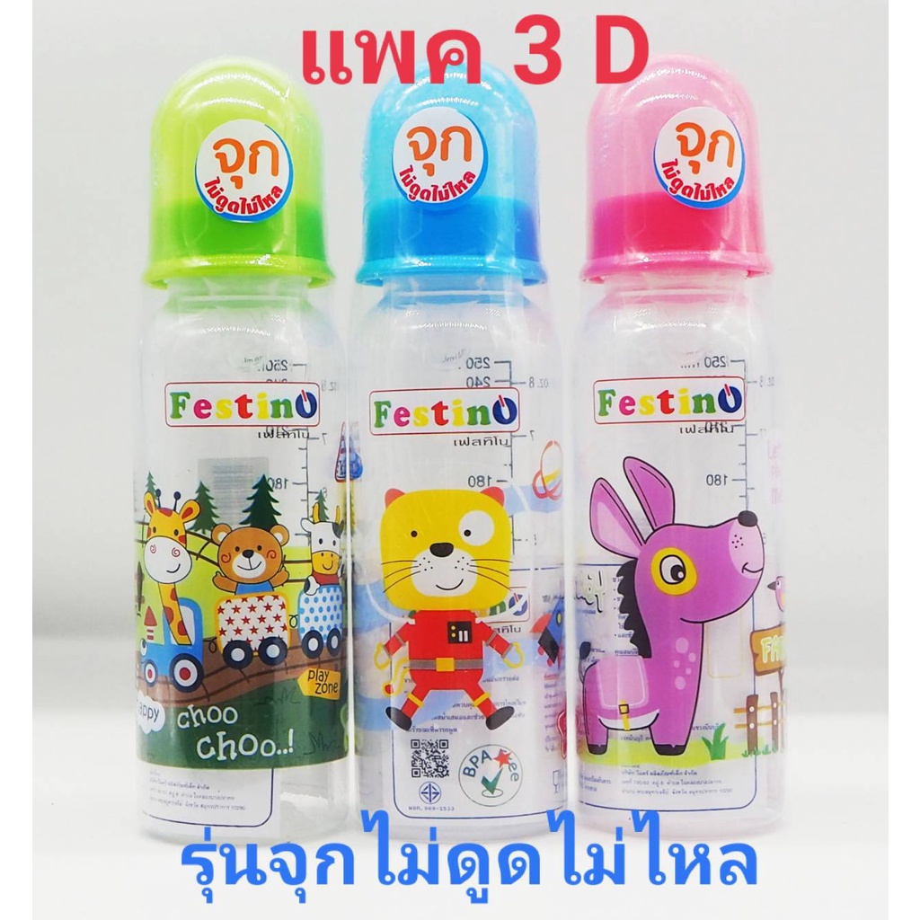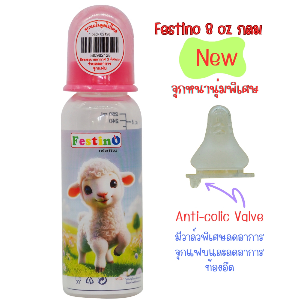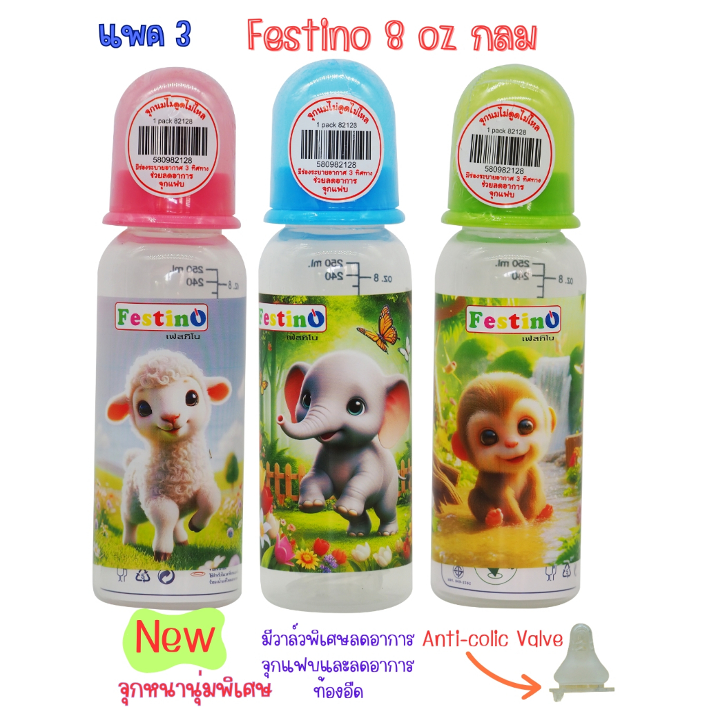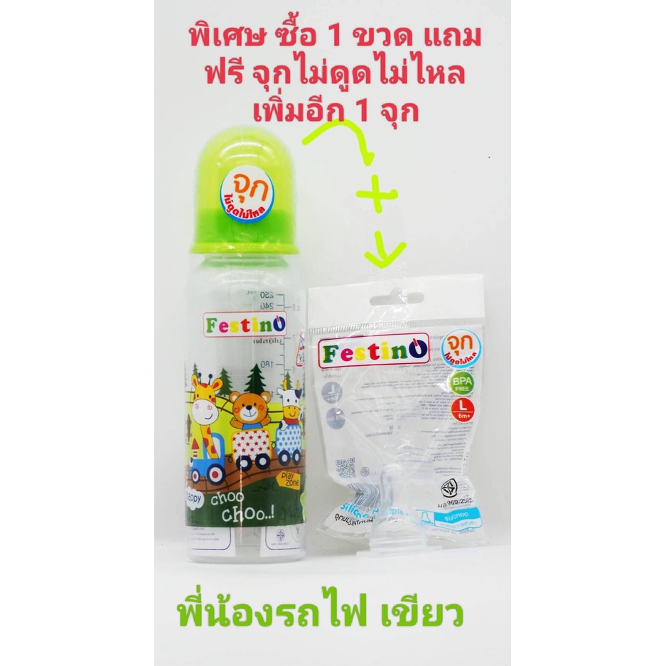 Festinoขวดนม 8ออนซ์ ทรงกลม คอแคบ จุกนมไซส์ L มีสเกล2แบบ