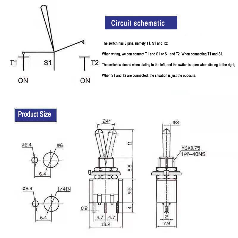 1pcs สวิทซ์โยก 6 มม. 5A สีเงิน-สีทอง รุ่น MTS-102 3 ฟุต 2 เกียร์ สวิตช์โยกเล็ก สวิตช์ไฟ 12v สวิชโยกส