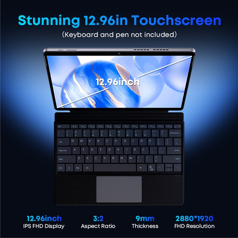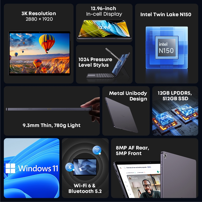 Chuwi Hi10 Max สูงสุดแท็บเล็ต 2 ใน 1 แท็บเล็ต 12.96 นิ้ว 3K แสดงหลัก N150 แล็ปท็อป 12GB RAM 512GB รอม Windows 11 แท็บเล็ต 2.4G / 5G WiFi