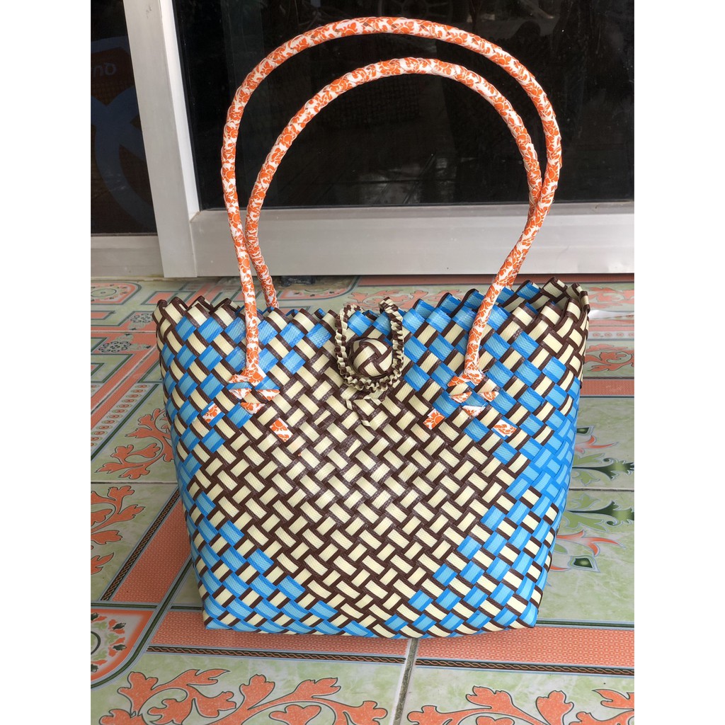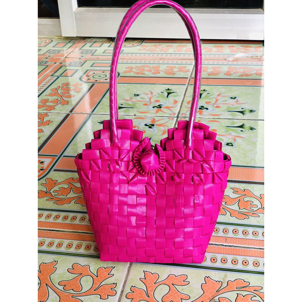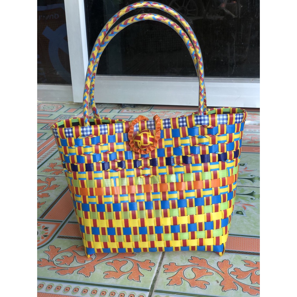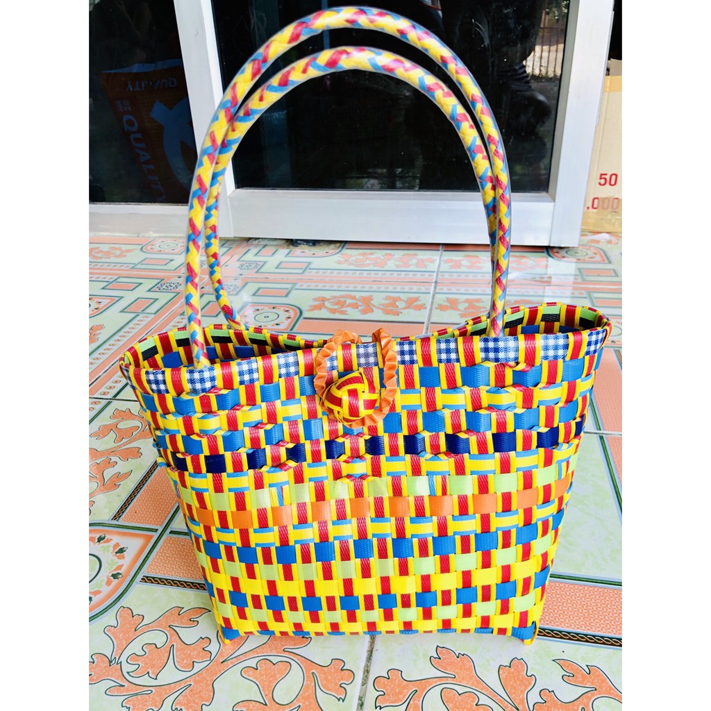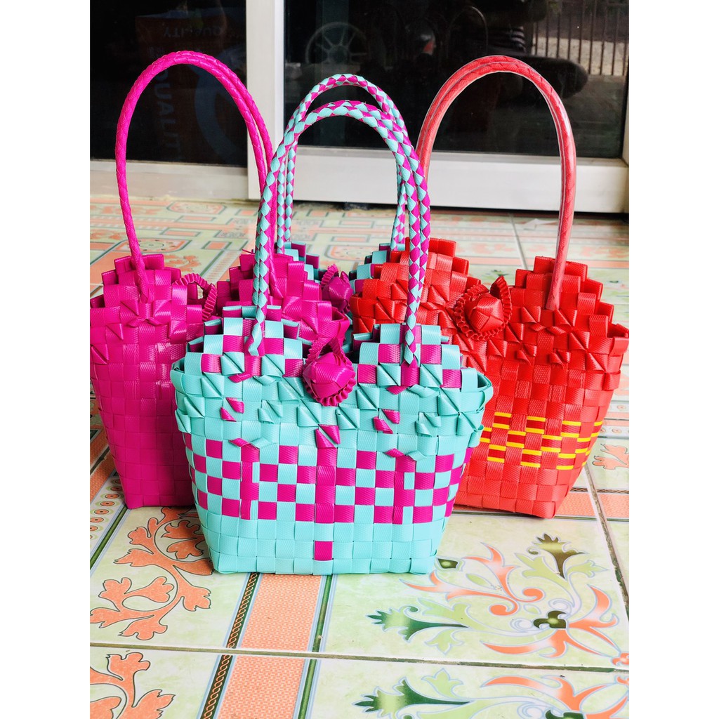 ตะกล้าสานกลุ่มคนพิการหารายได้ ทางร้าน Pia Shopping shop ช่วยขาย ตะกล้าพลาสติกสาน ตะกล้าแฮนเมค กระเป๋าพาสติก ตะกล้าสานha