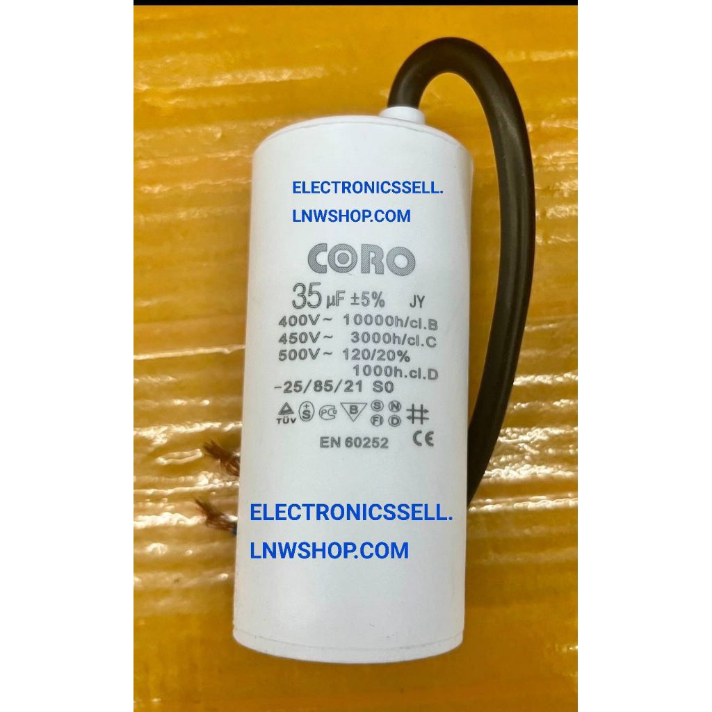 35UF450V คาปาซิเตอร์ 35UF 35MFD 450V AC มีสาย ไฟ ยี่ห้อ CORO MKA35 CAPACITOR คอนเดนเซอร์ CONDENSER CONDENSUTOR ในไทย