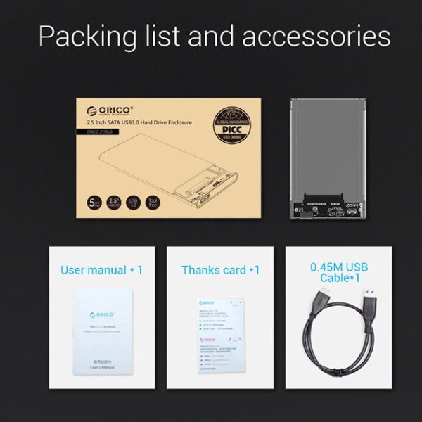 ORICO 2139U3 กล่องใส่ HDD 2.5 นิ้ว Harddisk / SSD สีใส USB3.0 2.5 inch SATA SSD Hard Drive Case