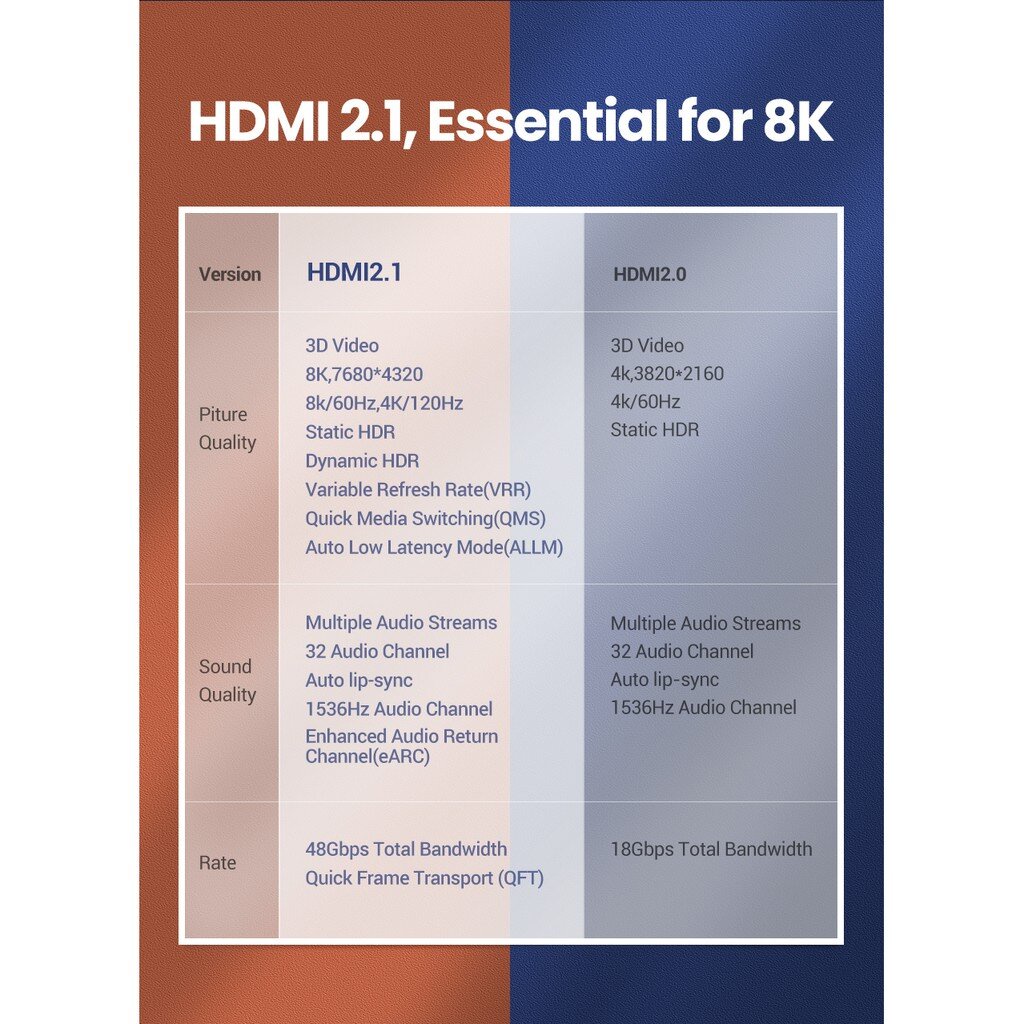UGREEN HDMI Cable 8K V2.1 - 8K/60Hz 4K/120Hz 48Gbps HDCP2.2( HD140)